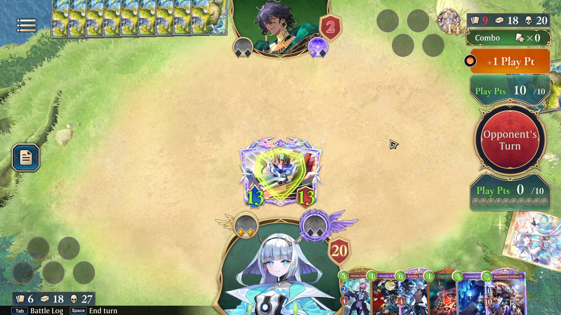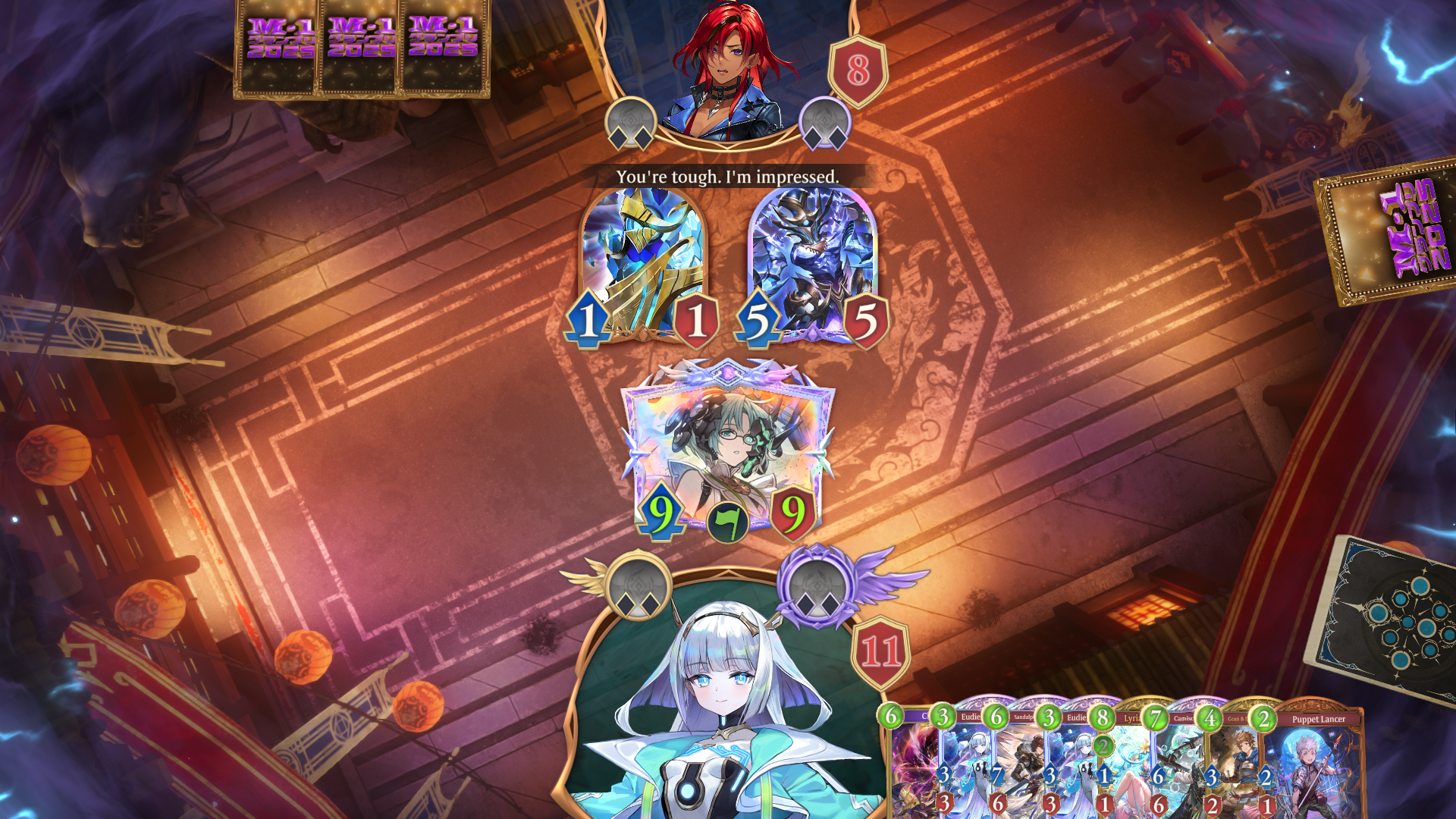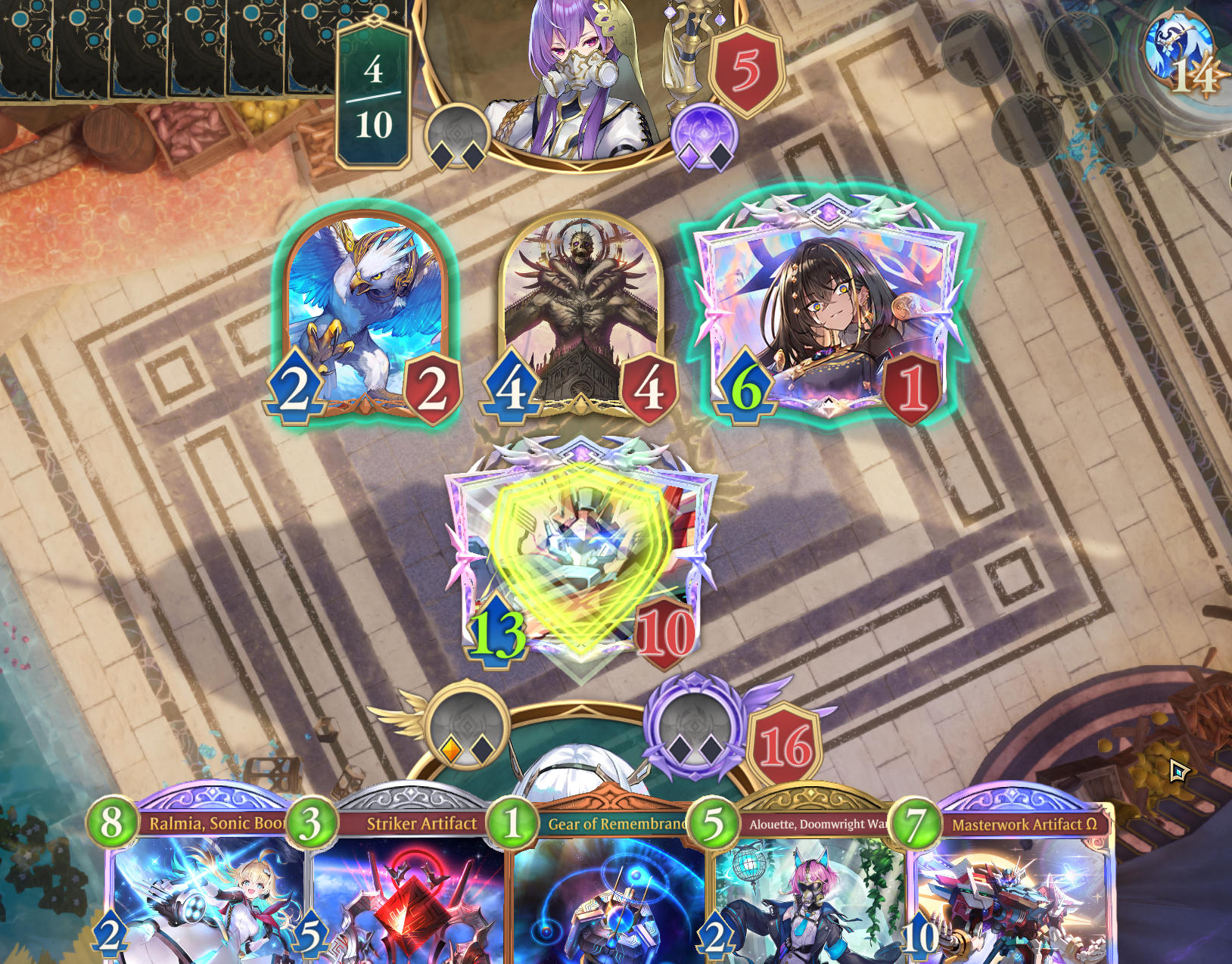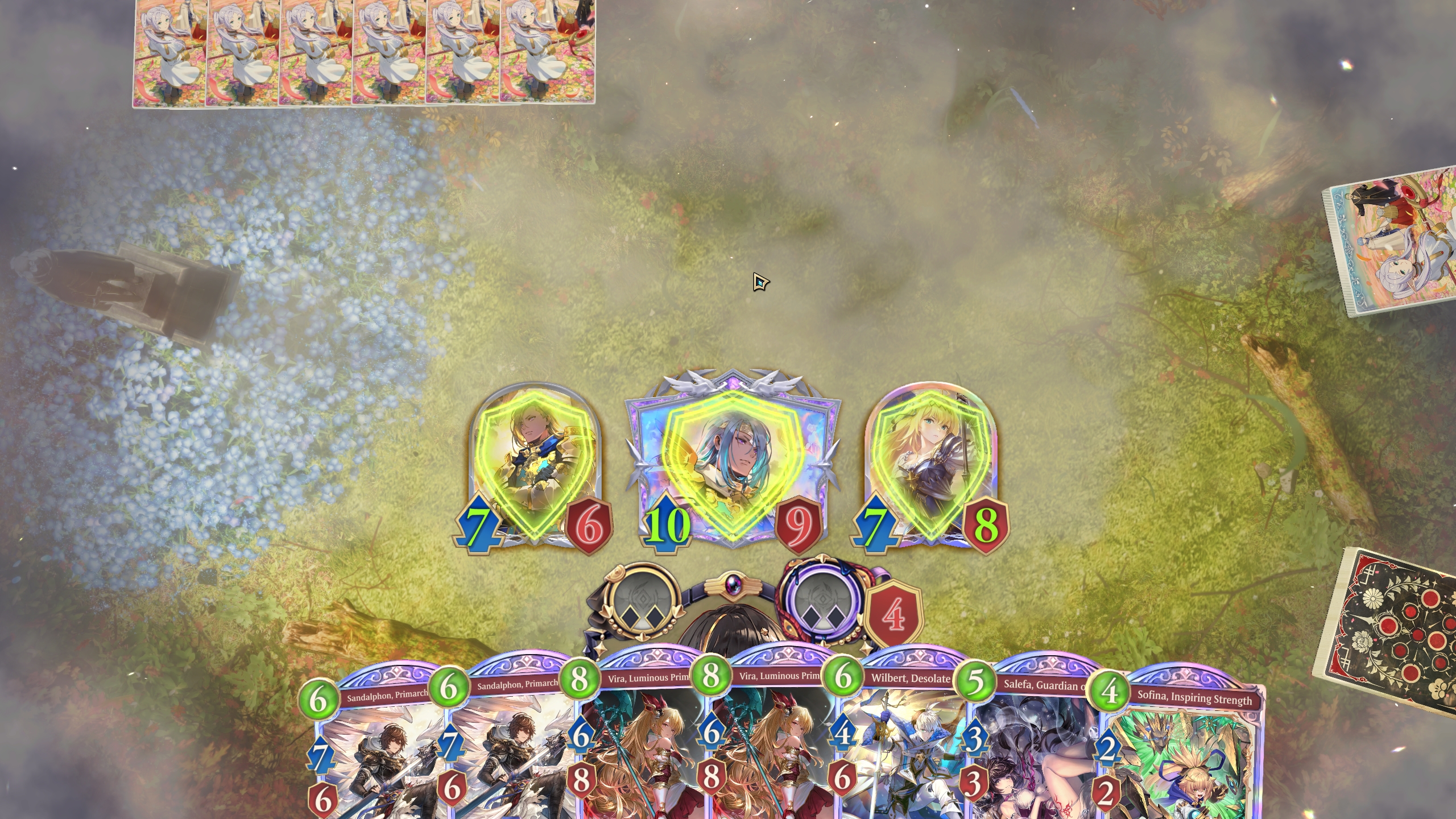 >mid table is crystal mirror>both are holding 2 copies of a 9pp calge on turn 9
