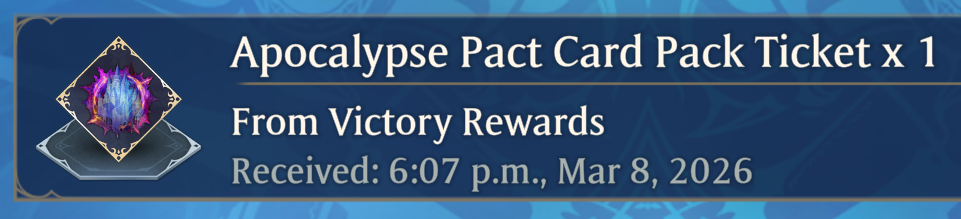 >NewsVictory Rewards Chest Event! (March 1st, 2 am - March 10th 8 pm UTC)https://shadowverse-wb.com/en/news/detail/?id=01KGNXH9X0PJYA6RCH2SD6QJKV>6th Card Set: Apocalypse Pacthttps://shadowverse-wb.com/en/cards/pack/apocalypse-pact/https://www.youtube.com/watch?v=5twIjKWQBeI>Resource Guide (decks, tier lists, guilds, stickers, and leader trailers)https://rentry.org/svg-resourcesOfficial website & deck portalhttps://shadowverse-wb.com/en/https://shadowverse-wb.com/en/deck/Shadowverse Evolve TCGhttps://en.shadowverse-evolve.com//svg/'s card & leader database and deckbuilder (classic)https://svgdb.meShadowverse: World's Beyond Card Databasehttps://mhmkhlrdn.github.io/WBGDB/SiteLast Showdown: >>559612684