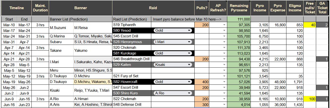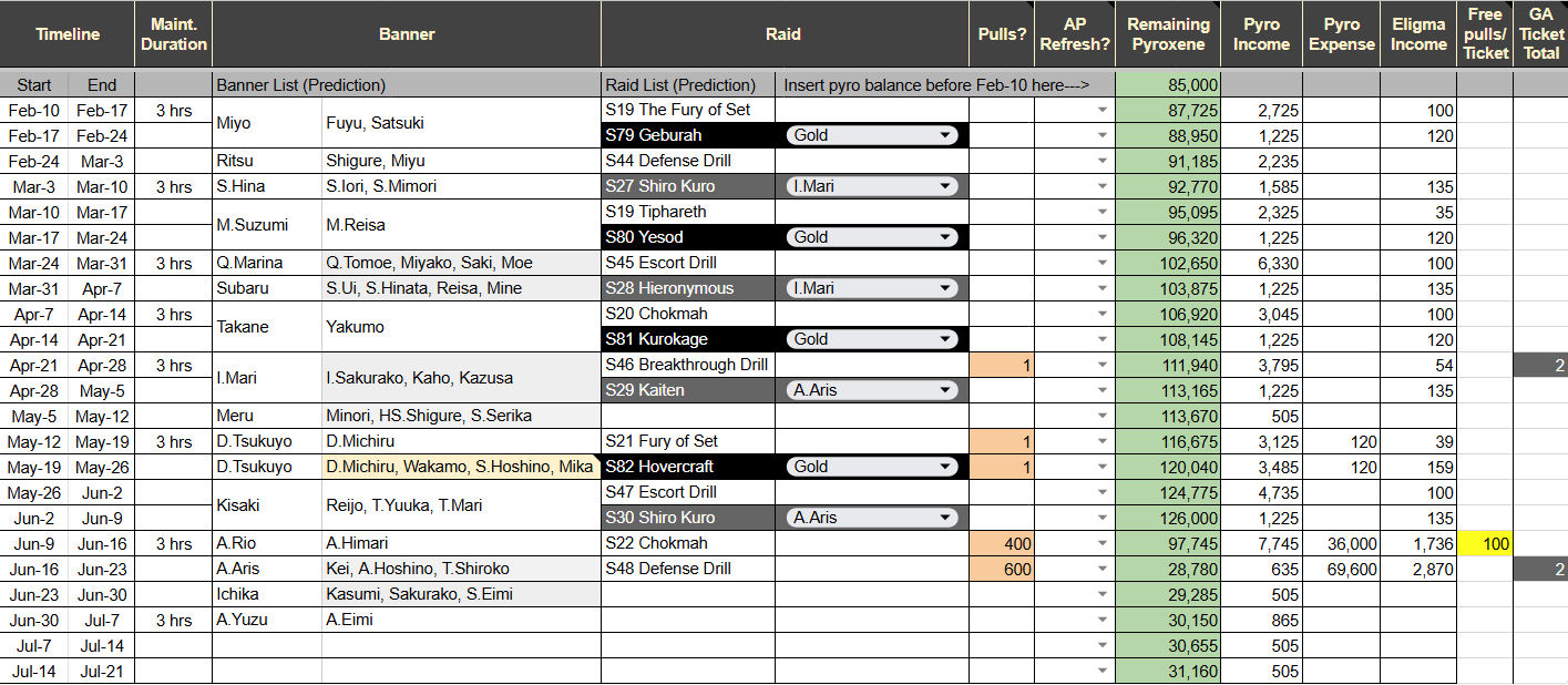 >>559711849>Also, am I using this planner correctly?no, you've set 20 GA pulls for idol banner and only wrote 1 pullalso you forgot to change the gold option to plat