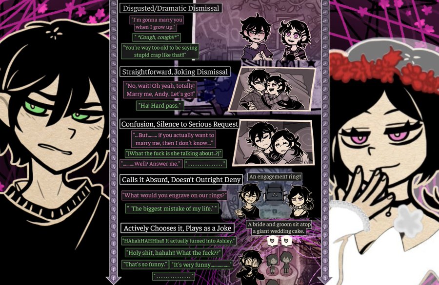 >>559749895I'm pretty sure the marriage ending or some variation of it will be the reward for getting all the stars in the vision roomStars come from 'wholesome' interactions between Andrew and Ashley, and the Entity mentions you can see a future vision if the stars align