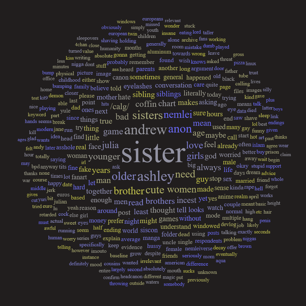 me and my sister have genuinely been mistaken as a couple a few times.The first time was at a hot ass renaissance fair by a super fat carny that was drowning in his own sweat so I could excuse that as just him hardly being able to think straight but all the other times have been cashiers at malls n shit and it doesn't even make sense those times because me and my sister look similar so it's not even a case of us not looking relatedI have no idea if this is just confirmation bias or something but it gets to a point where I feel like brotherXsister-cons are all around us hidden in plain sight