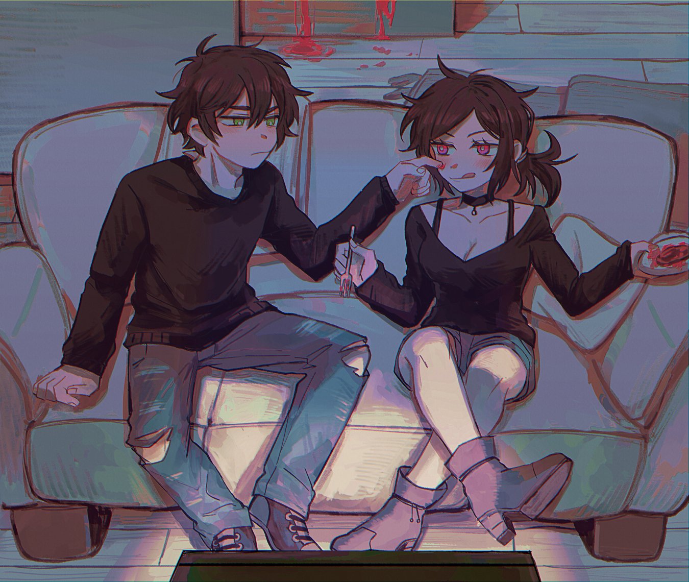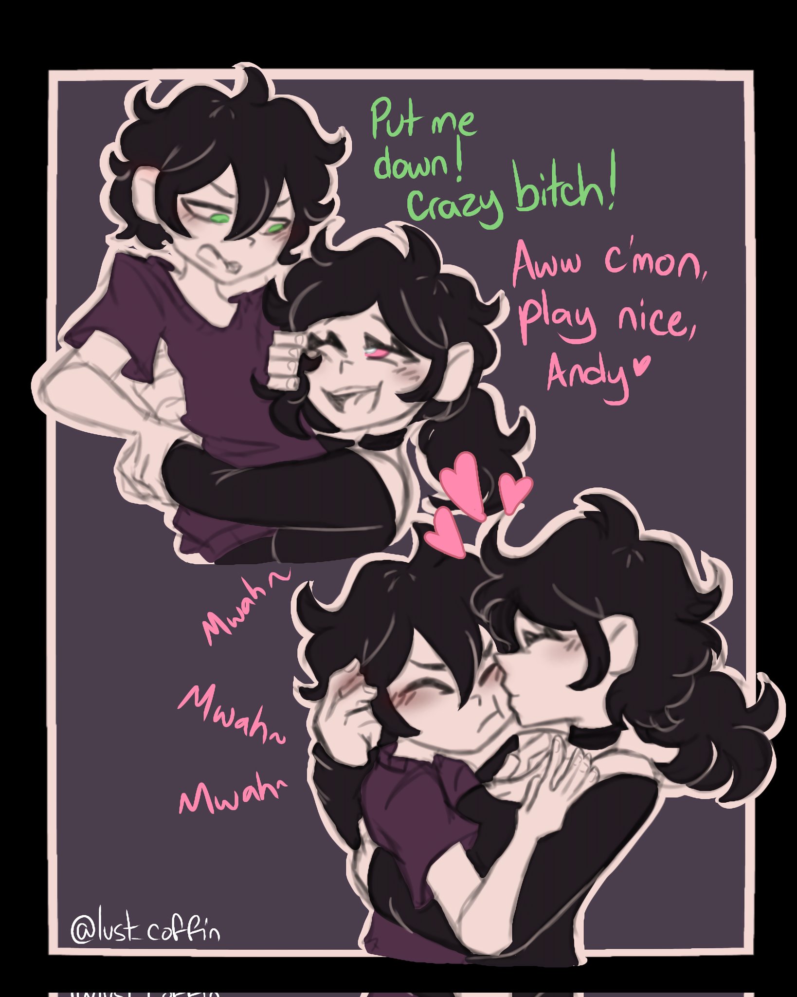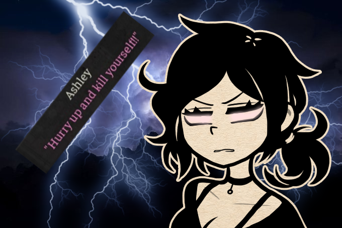>>559935978I remember reading this fanfic, this didn't actually happen in the fanfic, but I imagine it's if the OC here (Ashley's and Andrew's kid) snaps and becomes violent like her parents.