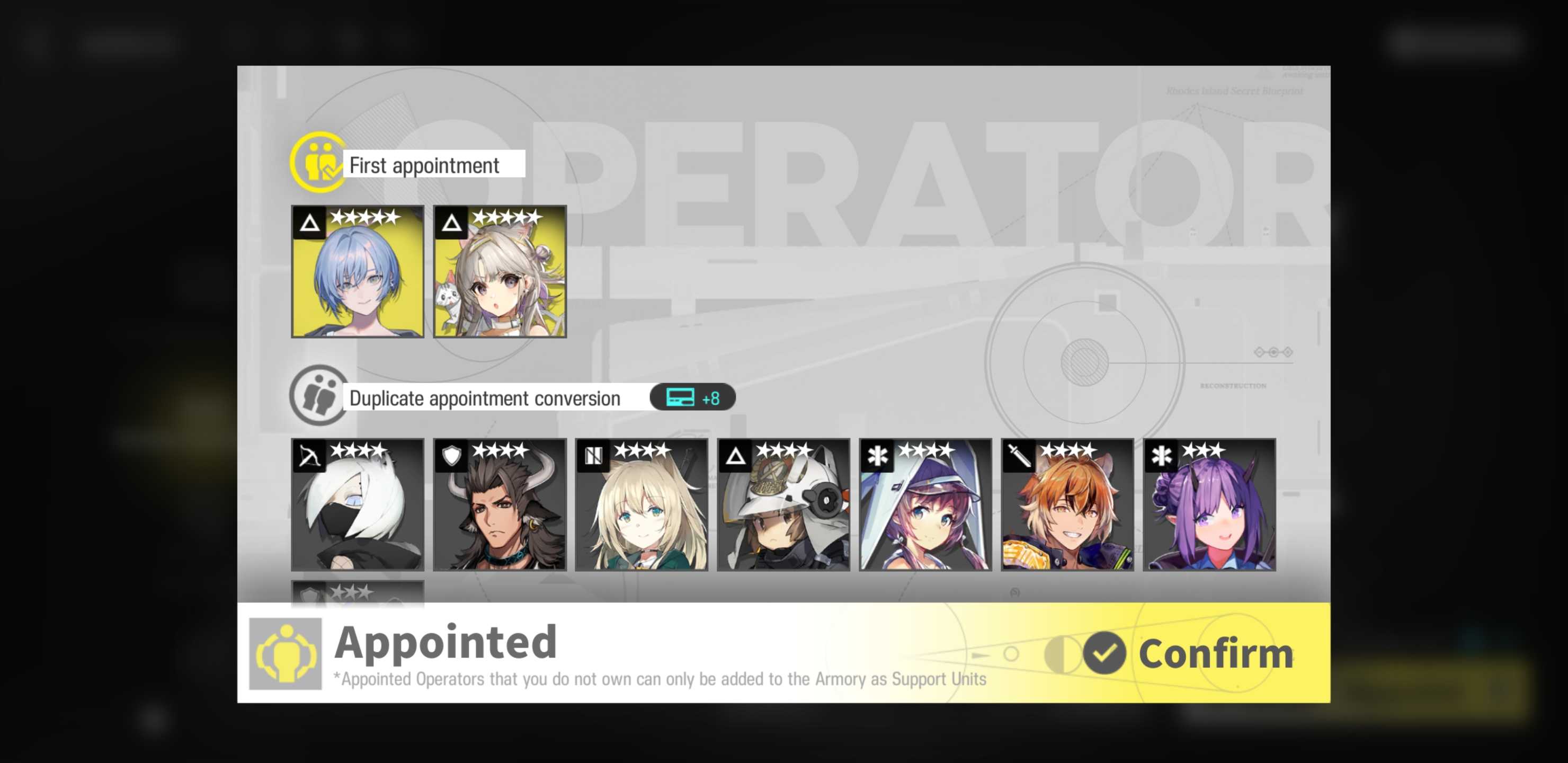 [3/6-3/20][Orienteering Headhunting]6* Medic Mon3tr, 6* Caster Logos, 6* Guard Hoederer, 6* Specialist Ascalon, 6* Sniper Ray, 6* Specialist Thorns the Lodestar, 5* Specialist Figurino, 5* Specialist Tippi, 5* Caster Rockrock, 5* Vanguard Fang the Fire-Sharpened, 5* Specialist Almond, 5* Supporter Proviso