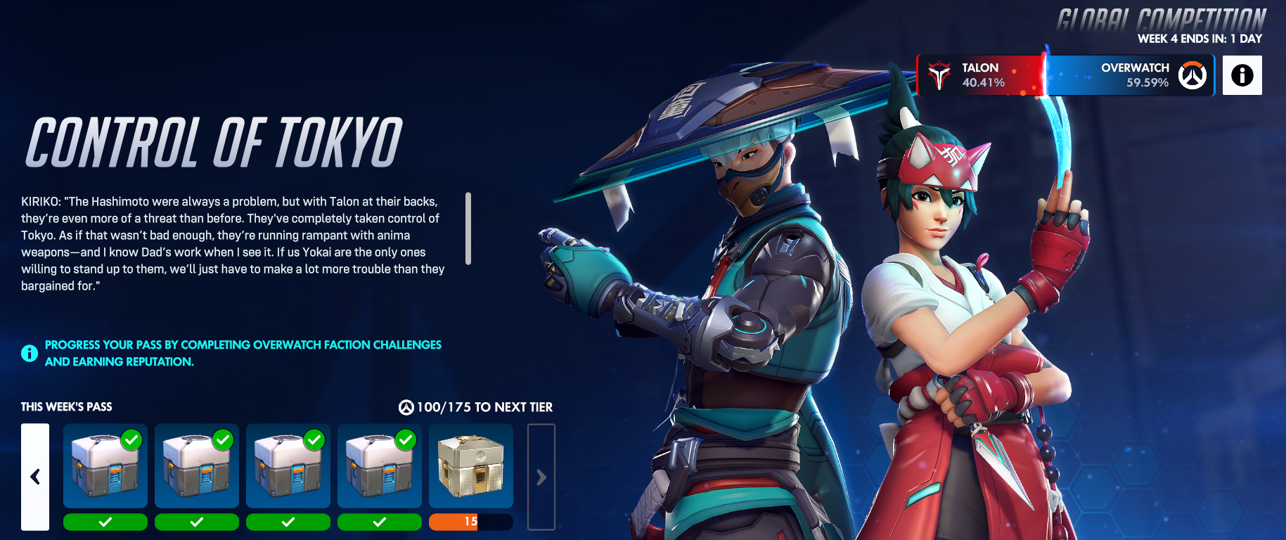 >Overwatch 2026 Spotlighthttps://www.youtube.com/watch?v=N8Sgnn72e9Y>Animated Short | "Reign of Talon"https://www.youtube.com/watch?v=Ch2J2Xuu3VI>Cursebreaker Story Time with Julian Cihihttps://www.youtube.com/watch?v=bT6iXb9N9TY>Another Life Story Time with Olivia Le Andersen and Kerem Erdinchttps://www.youtube.com/watch?v=oP3Pba3mo7M>Season 1: Conquest Trailerhttps://www.youtube.com/watch?v=Oji19FJjP74https://www.youtube.com/watch?v=Jxli-VIX8fw>Latest patch noteshttps://overwatch.blizzard.com/en-us/news/patch-notes/>Comics, short stories and musichttps://overwatch.blizzard.com/en-us/media/>Overwatch Esports 2026 Viewership Rewardshttps://esports.overwatch.com/en-us/rewards>Official Hero Statisticshttps://overwatch.blizzard.com/en-us/rates/?input=PC&map=all-maps®ion=Americas&role=All&rq=2&tier=All>ScheduleNier Automata Collab - March 10thSeason 1 Rebrand w/ FIVE (5!) New Characters - Out now!Juno Mythic Weapon & Mythic Mercy Skin - Out now!Conquest: Week 4 event; Pick Overwatch or Talon and complete missions to earn exclusive rewards - Out now!>Overwatch Wikioverwatch.gamepedia.com>Stadium HelpUse the in-game build helper; it auto suggests the most popular builds/items globally per hero>Overwatch Dev Trackerdevtrackers.gg/overwatch>Overwatch Esportsliquipedia.net/overwatch/Main_PagePrevious Thread:>>559685437