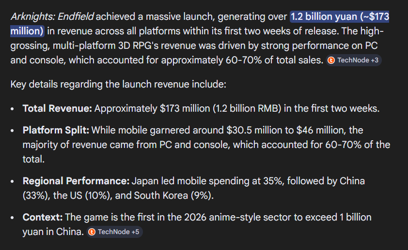 >>559770492>I saw the reactions when AK almost beat EF in revenueBro, Arknights' revenue is virtually ALL mobile only. This is not the case with Endfield. Unless you still want to live in your Sensortower fantasy