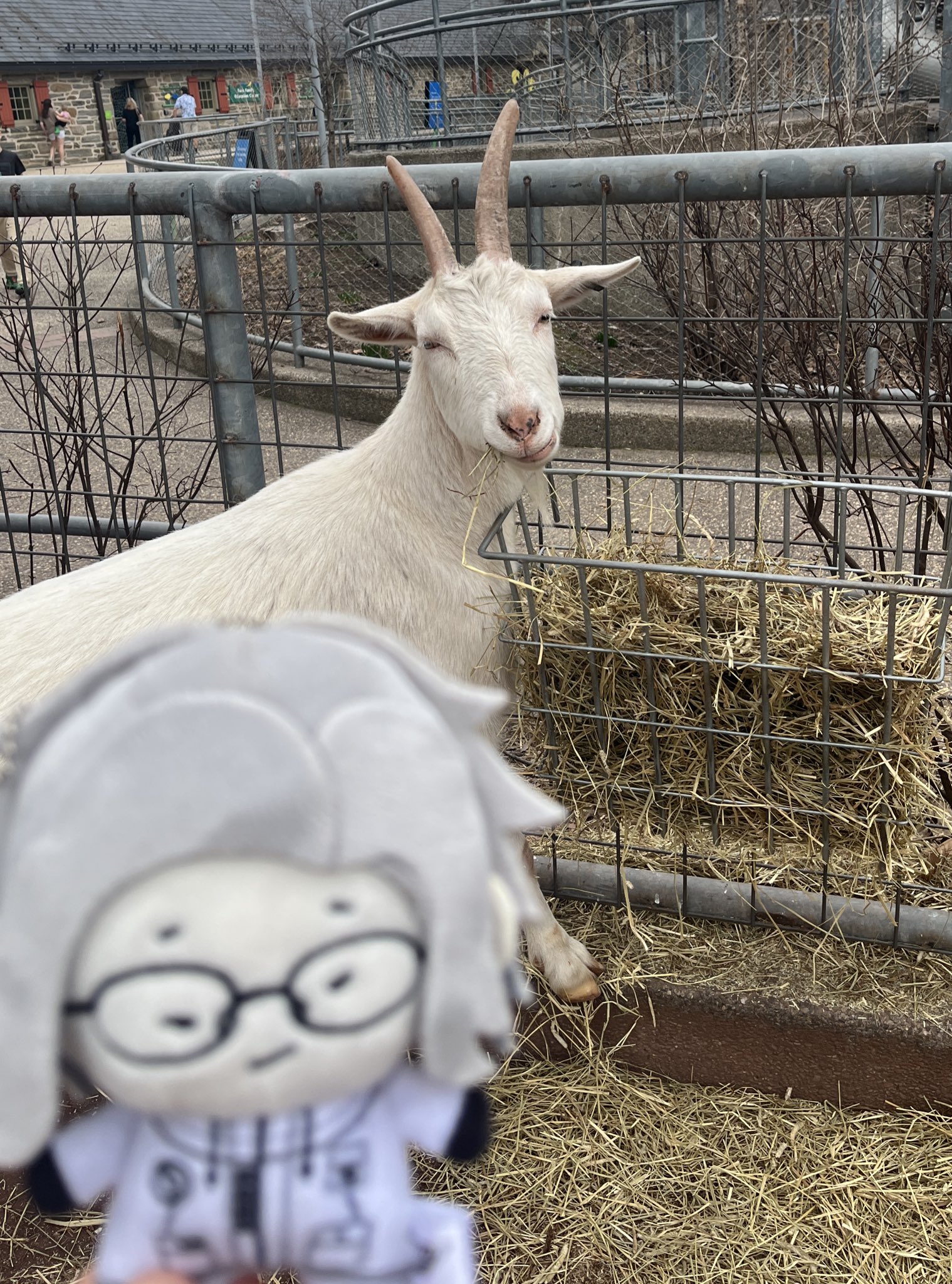 Giving baby goat Eito those soft books for babies so he wouldn't eat them
