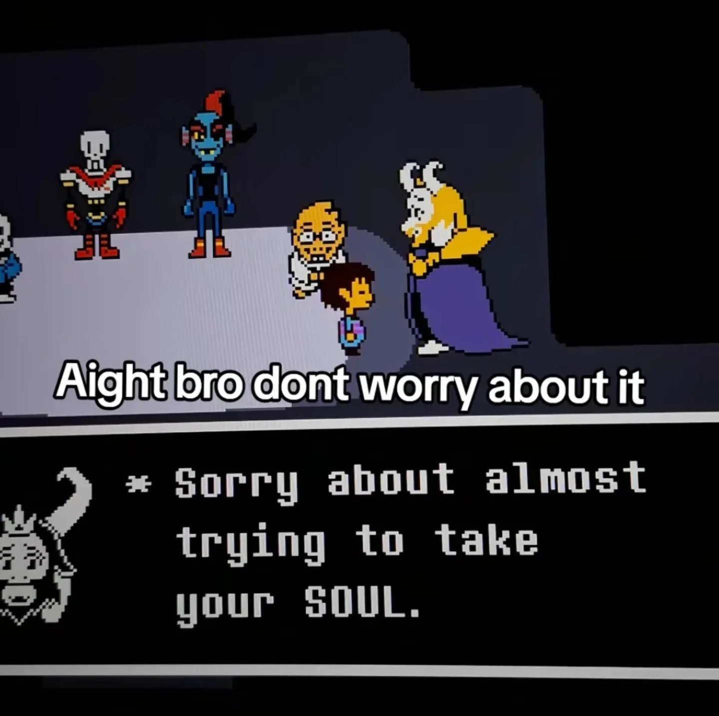 So what was sans yapping about before he fell asleep at the end of his battle? It all felt like random babble to sound deep and intellectual but i feel like it didnt really have any impact, i've literally seen no soul in this planet bring up those lines about muh "youll never give up even if theres no benefit to doing so" and muh "youll just keep going not out of evil or good but cus you can" or even focus on them for more than 2 seconds, like lmao sans really thought he was being deep there