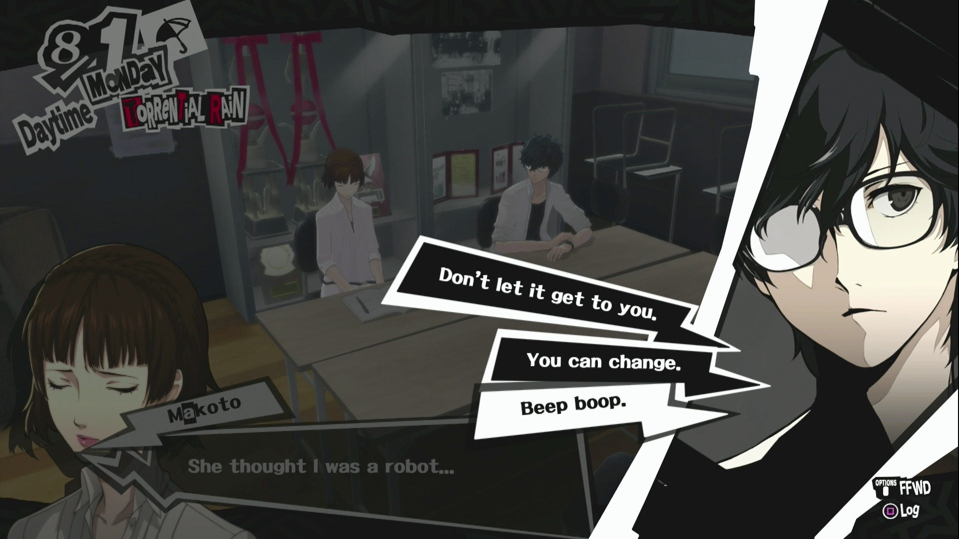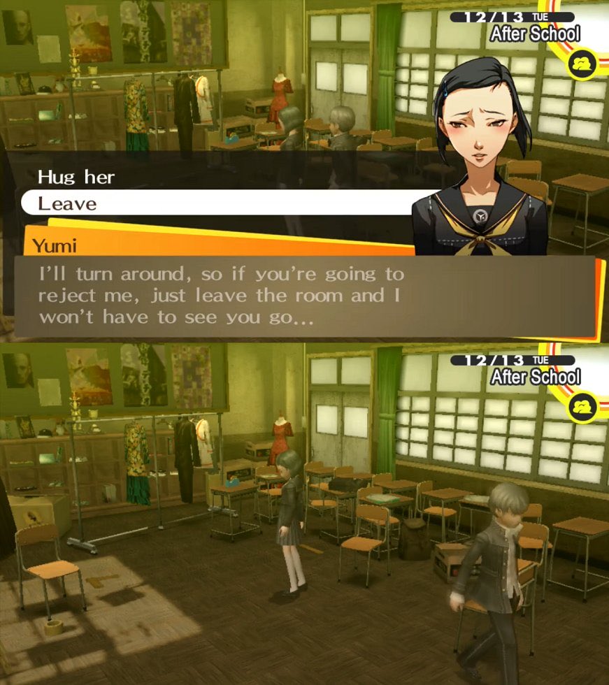 except you arent even bloodrelated to futaba so it would have been out of place and forced by the devs if she did that