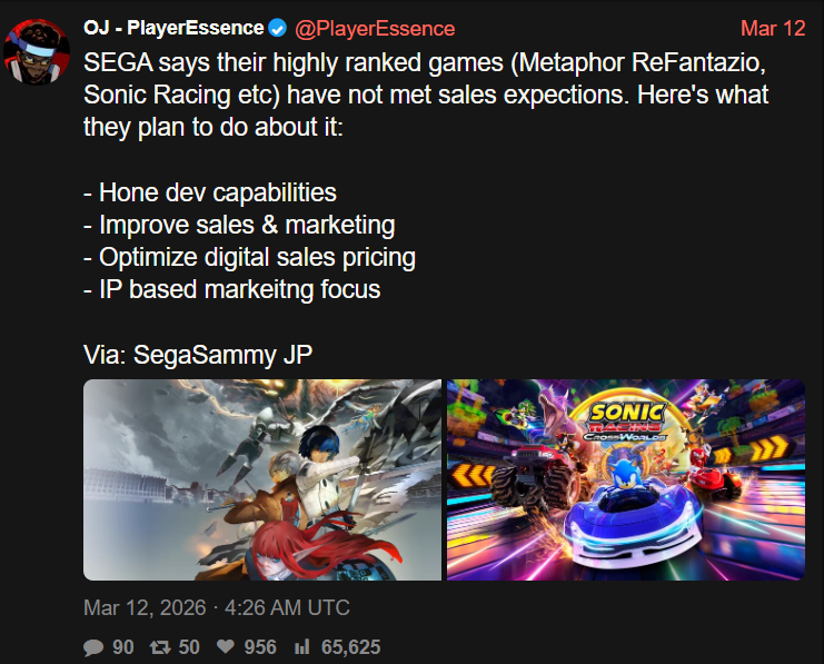 >>560200858That is also not what Sega said, they said high review scores haven't had an impact on game sales and Sonic Racing is the only game they've said underperformed in recent months I really don't get why these third worlders like lying about Sega so much