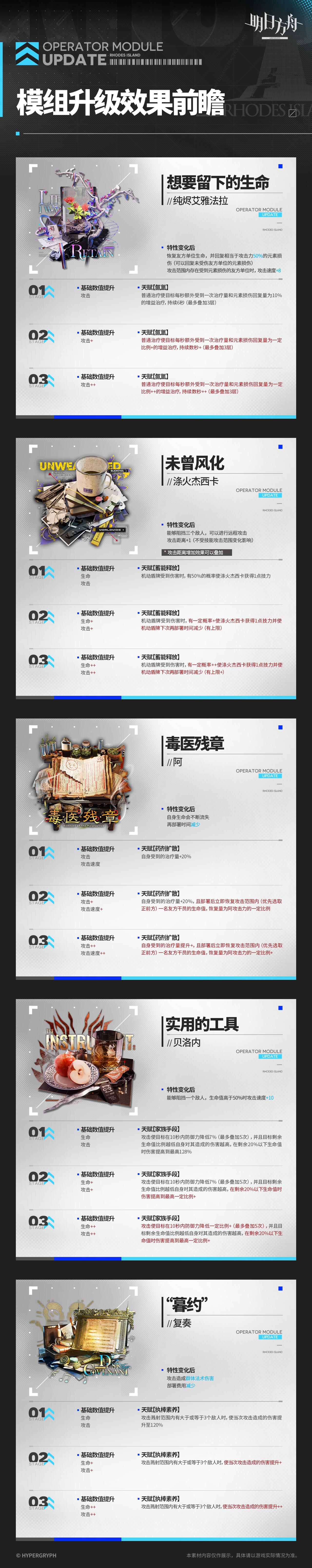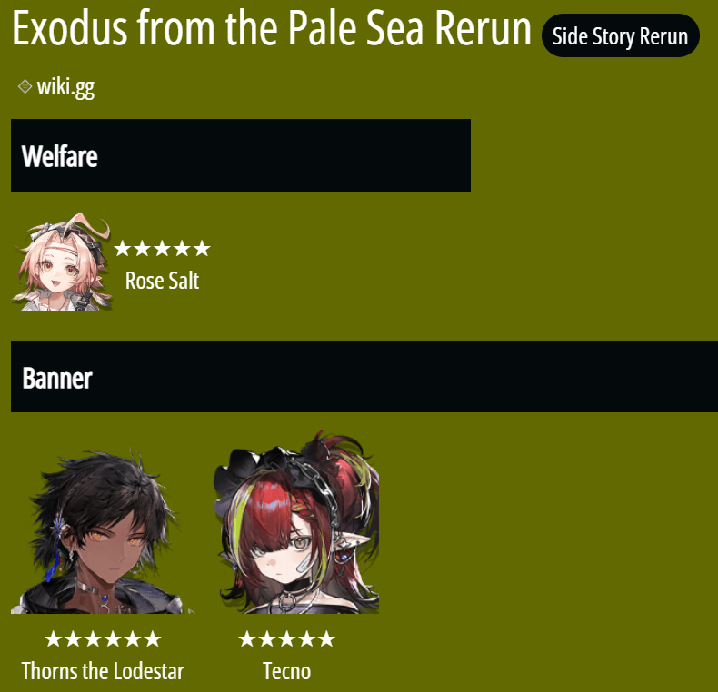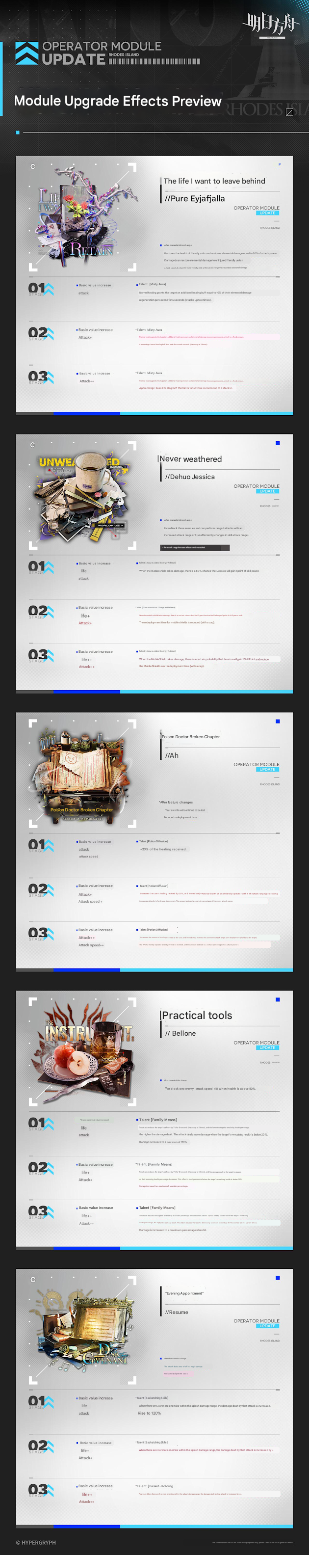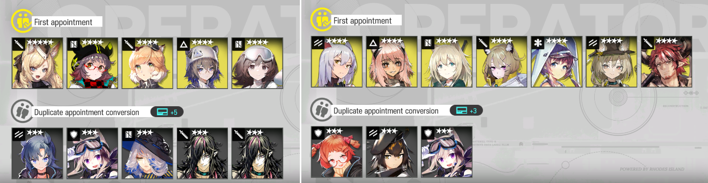 Previous thread: >>559735795>CURRENT, FUTURE GLOBAL/JP/KR CONTENT:[2/27-3/13][Standard]6* Sniper Fiammetta, 6* Defender Penance (Shop), 5* Vanguard Cantabile, 5* Specialist Spuria, 5* Caster Harmonie (Shop)[3/6-3/27]Rebuilding Mandage - Puzzle skin[3/6-3/20][Orienteering Headhunting]6* Medic Mon3tr, 6* Caster Logos, 6* Guard Hoederer, 6* Specialist Ascalon, 6* Sniper Ray, 6* Specialist Thorns the Lodestar, 5* Specialist Figurino, 5* Specialist Tippi, 5* Caster Rockrock, 5* Vanguard Fang the Fire-Sharpened, 5* Specialist Almond, 5* Supporter Proviso[3/6-3/20][0011]Figurino[3/6-3/20][Skin reselling]Irene, Leizi, Kroos the Keen Glint, Coldshit; Wind Chimes>CURRENT, FUTURE CN CONTENT:[2/26-3/12][Standard]6* Specialist Swire the Elegant Wit, 6* Guard Degenbrecher (Shop), 5* Supporter Alanna, 5* Supporter Quercus, 5* Caster Aroma (Shop)[2/10-3/10][0011]Dusk, Ling, Yu, Philae, Surfer[2/24-3/17]Vector Breakthrough #2 - Greyy skin[2/24-3/10][Skin reselling]Viviana, Bagpipe, Matoimaru[3/10-3/17]Crossing Nuova Volsinii - Kestrel skin[3/10-3/24][By My Rule]6* Guard Bellone, 5* Caster Ripresa, 5* Defender Cement[3/10-3/24]Leizi the Thunderbringer, Raidian, Papyrus[3/10-3/24][Skin reselling]Nymph, Valarqvin, Sesa, Dur-nar>/akg/ website:akgcc.github.io>AK EN Database:puppiizsunniiz.github.io/AN-EN-Tags/akhrchars.html>More valuable resources:rentry.org/akg_resources>/akg/ merch guiderentry.co/akg_merch