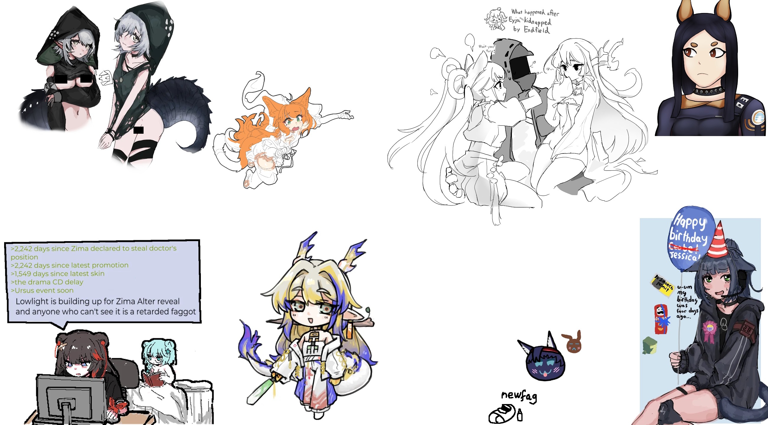 >>559771058All of these are disappointing. Eyja getting slightly better HPS is going to do nothing, Aak is entirely pointless, no one asked for him to get a Lancet style effect. Jessica is decent on paper, but you will continue to run Nian regardless because of Exodia and its really going to depend on numbers whether it'll even be worth it on S3 (over instantly retreating the shield, you might get one extra burst proc at best).