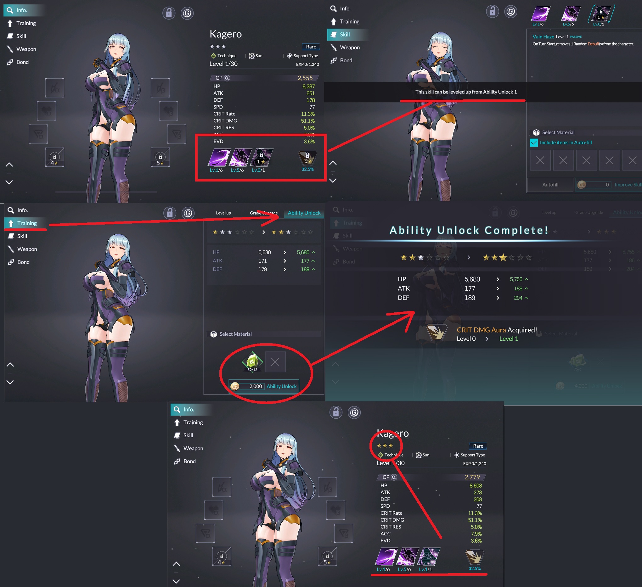 If you've gotten Mai from Main Story progress, or Murasaki from Journey, they are also good teammates to help ease your farming, but I imagine cores should do the bulk of heavy lifting for you here. From there, as your Feli + Asagi + Ybuta get closer to 50, you can drop 1 of them and bring in 2 other units to level while you gain cores and mobs. You can feed 1-star mobs to low level units to reach cheap level 2-5's, while the 2-star mobs can feed the few Shop mobs you get.