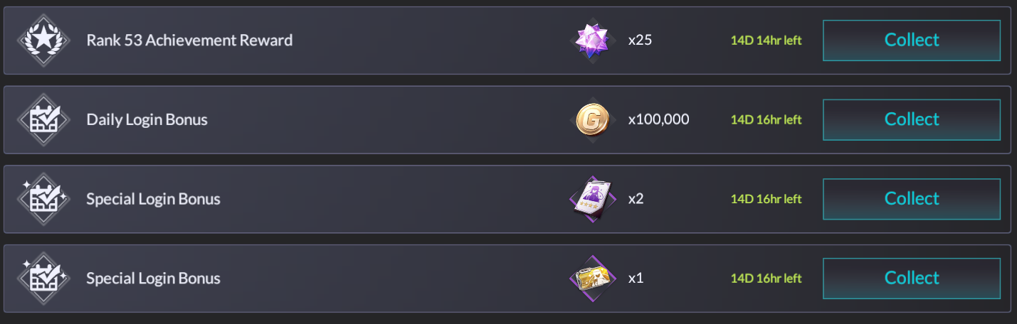 Hey, how topical. Special mailbox rewards, bros. Premium ticket and x2 Epic/"Stand in for 4-stars to make something 5-star" cards.