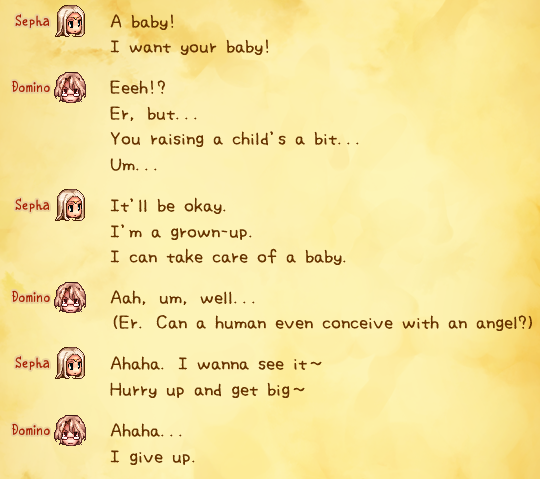 >>559858398Bro it's called ANGELIC chaos, TENSHI souzou. Go play some imouto game if you just want to have sex with your sister and not even molest the little angel.