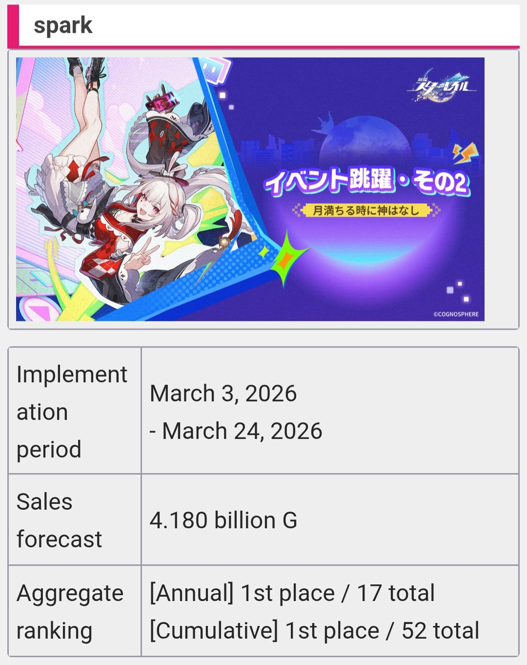 >>559812735Only Tribbie and Hysilens for 1st half banners. She's not gonna outsell any other first half banner at the rate the ranking is falling.