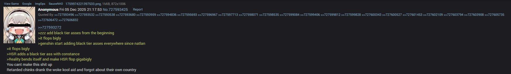 >>559811541>blacked imageThis is your average sparklefag btwMihoyo really did well giving her a black tier ass, sadly about the fact the target audience once again didn't have any money