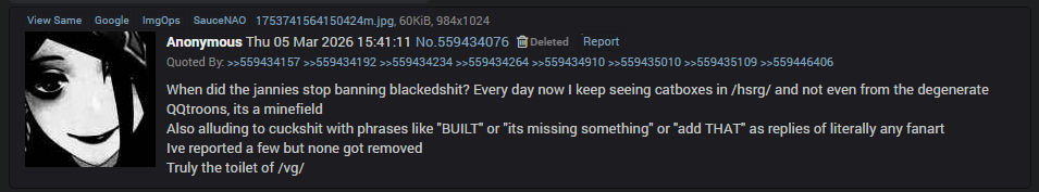 >>559824021>regular posters are HONORABLE and don't post NSFW since that's against the rulesYep...