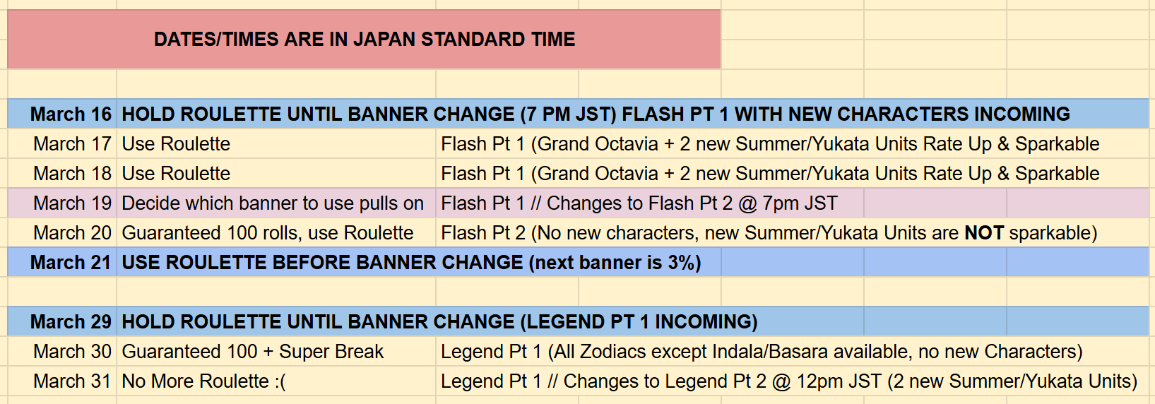 3/10 Steam Client Launch3/10 Anniversary5/15 FMA Collab>March Schedule3/10 Lancer Origin3/10 Magfest3/10 Anniversary Skins3/10 Rank Uncap (425)3/10 Artifact Scores3/10 12th Birthday Ticket3/10 12th Birthday Scratchers3/10 12th Birthday Skyscope Missions3/10 Seasonal Weapon Uncaps3/10 Grand Weapon Awakenings3/10 New Pro Skips3/10 Dimension Halo Update3/10 Auto Crew Buff Extension3/10 Character Recruit Replay3/10 Homescreen Updates3/10 Anniversary Roulette3/10 Free Zodiac Selector3/10 Raid Update New Solo Trophies3/10 Promotion New Stickers3/10 QOL Shop Updates3/10 Draw Banner Update Classic Spark Reset and Classic III3/11 Lecia (Style Change)3/15 Exo Cocytus Crucible Rerun3/16 Grand Octavia3/16 & 3/31 New Characters S.Anthuria, S.Black Knight, Y.Eustace, Y.Alliah3/23 Tales of Arcarum: The Moon Rerun3/29 QOL Golden Gift Adjustment>April Schedule4/1 April Fool's4/6 Water Advantage GW4/14 ROTB Update4/17 ...and you. added to Side Stories4/23 New MSQ Chapters & Fylkis4/23 Light and Dark Taboo>Granblue Relink: Endless Ragnarok - 7/9Closed Beta>https://relink-ragnarok.granbluefantasy.com/en/cbt/Latest Info>https://www.youtube.com/watch?v=NaKBXO0HHa4Maggie/Bea/Eustace/Gallanza playable>How to StartGo to https://game.granbluefantasy.jp in any Chromium-based browser>READ THE FAQ before posting - It will answer most of your questions if you're new or learninghttps://gbf.wiki/FAQ>Helpful links - These links contain useful information like important guides and other stuffGranblue Fantasy Toolbox - https://mizagbf.github.io/GBF Advanced Search - https://gbfas.ioGBF Grid and Teambuilding - https://gbfguide.comMain Story Transcript - https://calico.nekoweb.org/gbf/story/Wiki Advanced Grids - https://gbf.wiki/Advanced_Grids/gbfg/ Mega Pastebin - https://pastebin.com/xHkyQTy8/gbfg/ Crew Directory - https://rentry.org/gbfgcrewsPrevious >>559763004