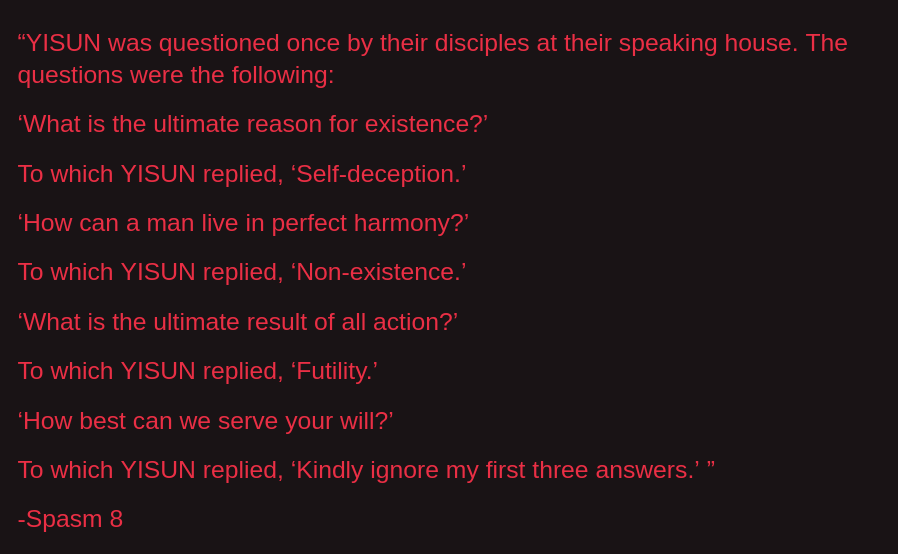 >>560255002I feel like you don't write nonsense poetry and base your setting and artstyle off of Egypt, Kabbalah, and Lovecraft shit without being a little bit schizo.