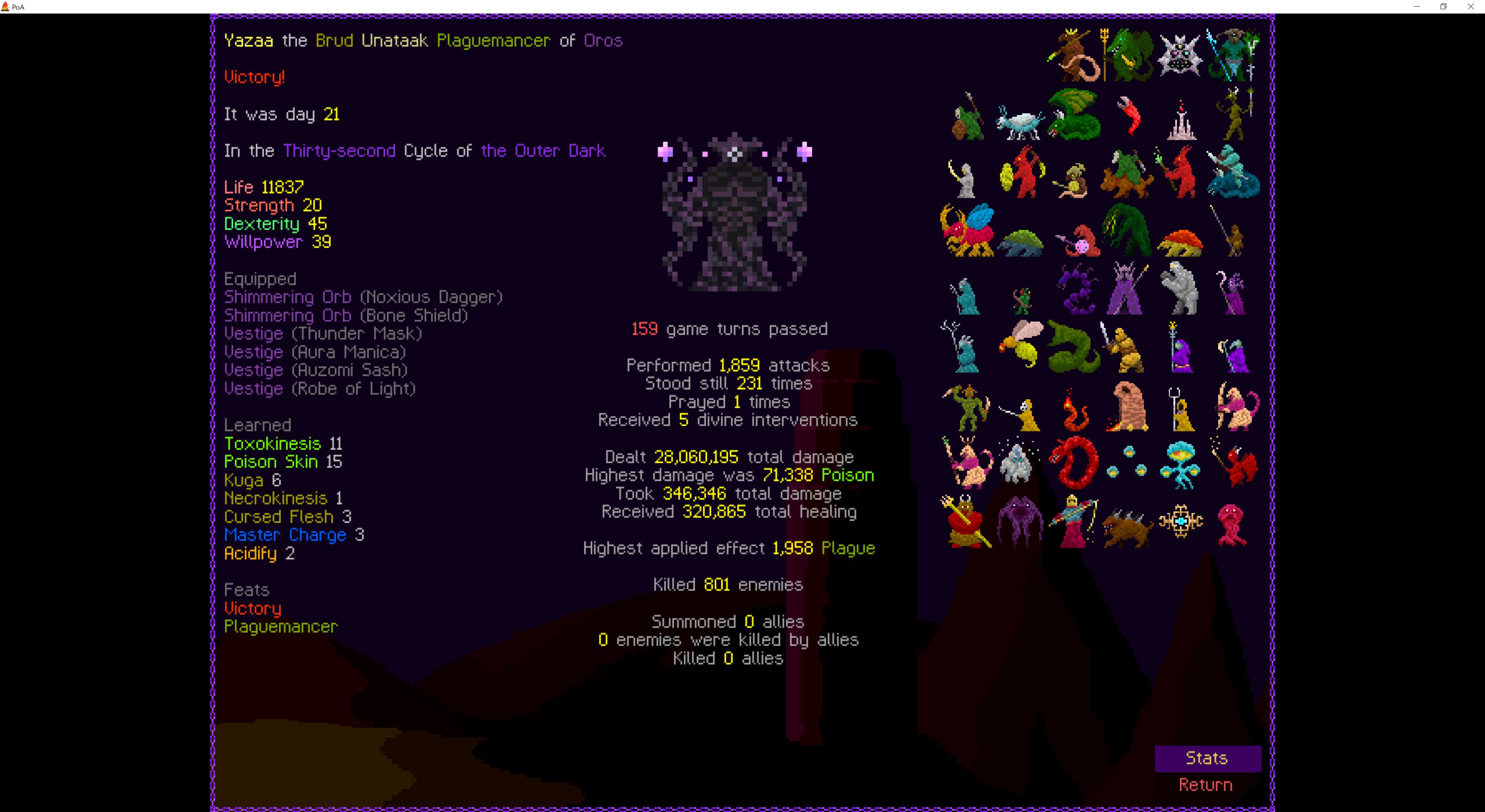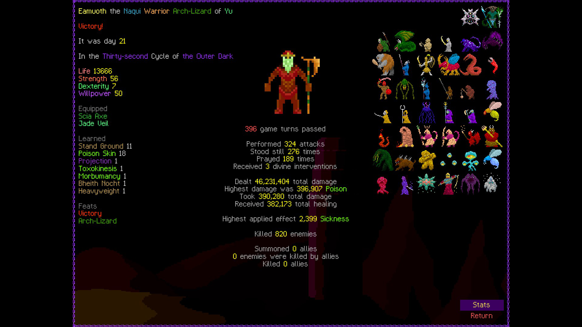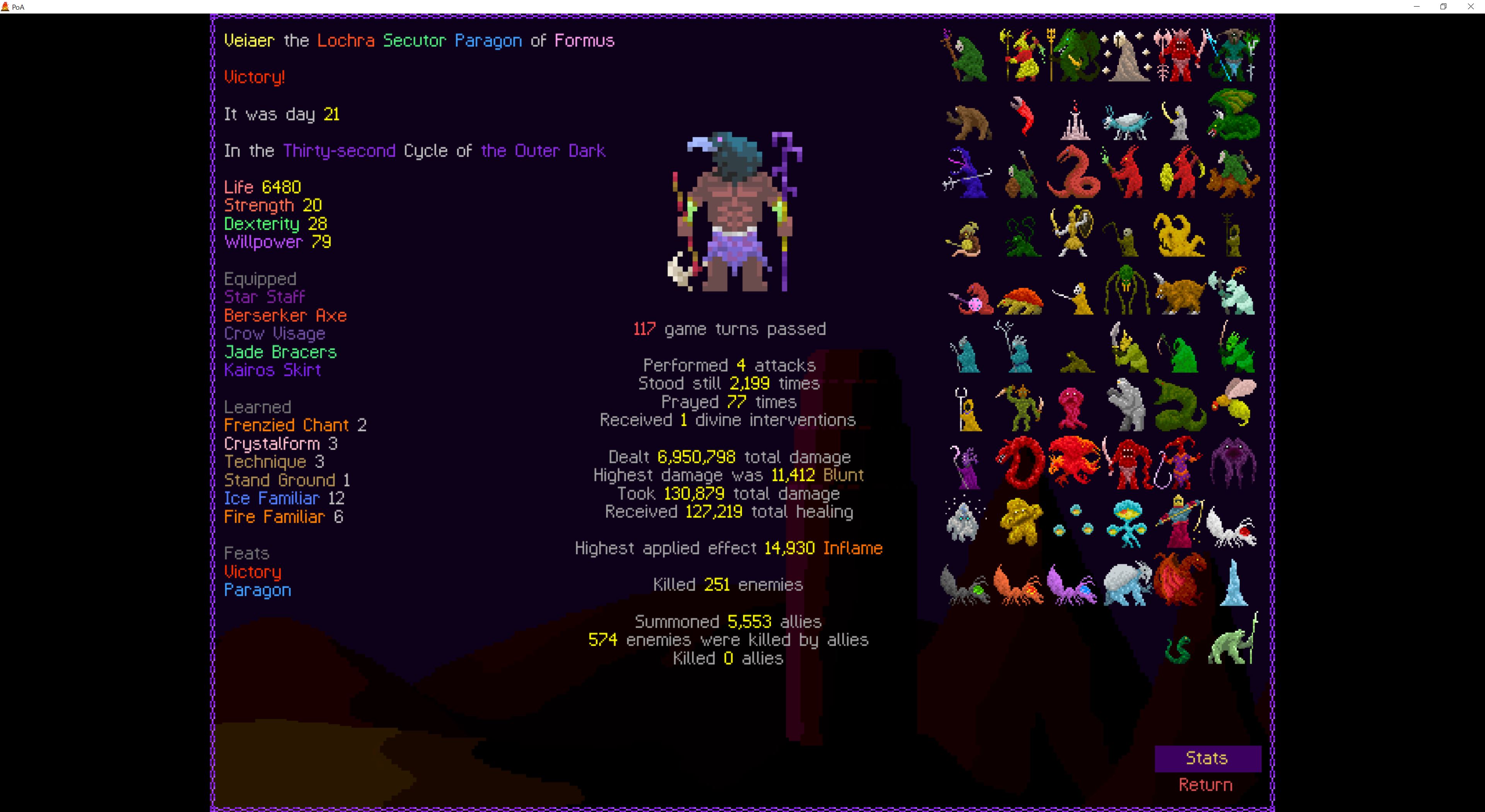 Sorry guys i betrayed and was playing StS2 instead of a roguelike so the thread croaked.