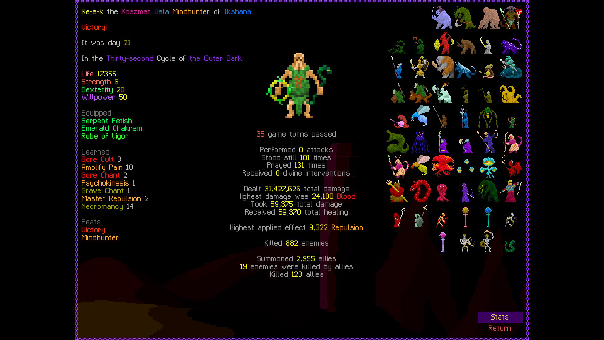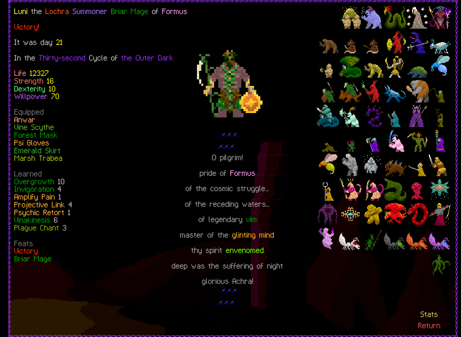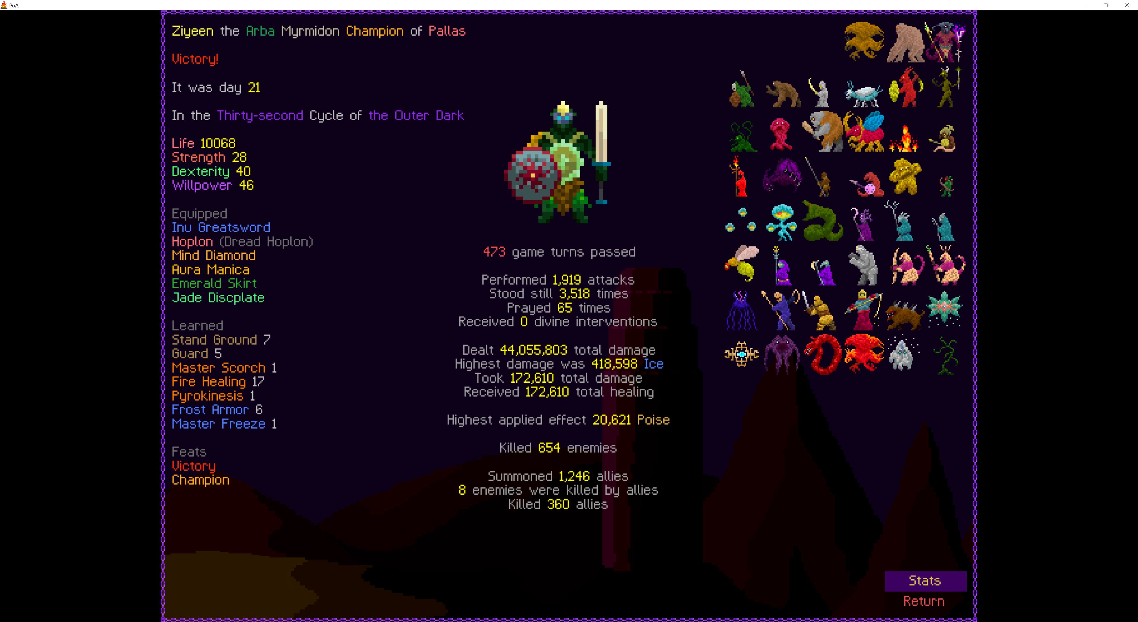 Sorry guys i betrayed and was playing StS2 instead of a roguelike so the thread croaked.