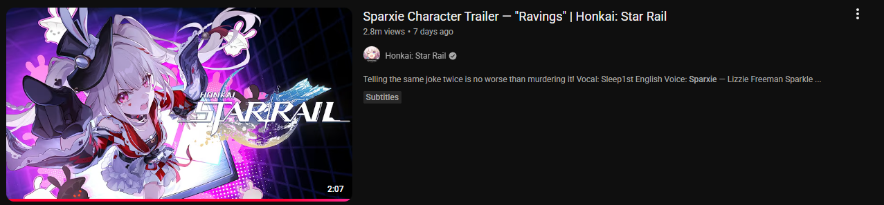 Previous: >>559811043>Version 4.1 "Unraveled for Daybreak" Special Program will be officially released on 2026/03/13 at 19:30 (UTC+8)https://www.youtube.com/watch?v=TgGPAPo02pM https://www.youtube.com/watch?v=H97-304rAxs >Download - https://hsr.hoyoverse.com/en-us/home>4.0 Preview Page - https://act.hoyoverse.com/sr/event/e20260206version-nwlbwa/index.html>Version 4.0 Trailer: "No Aha at Full Moon"https://www.youtube.com/watch?v=2hH0hILcWPshttps://www.youtube.com/watch?v=EMT6GmhDiBk>Sparxie Character Trailer: "Ravings"https://www.youtube.com/watch?v=NU6J88t4luMhttps://www.youtube.com/watch?v=AdUoc-nSB94>I'll Never Forgive Star Railhttps://www.youtube.com/watch?v=7ia3b_9-znQhttps://www.youtube.com/watch?v=gI-W8r-TWUM>Current Character Banners: Sparxie, Yao Guang, Cerydra, Rappa, Sparkle + Pela, Hanya, Qingque - https://www.hoyolab.com/article/44017918>New Drip Marketing:>Ashveil (5* Lightning Hunt) - https://www.hoyolab.com/article/43666646>Redeemable Codes - https://hsr.hoyoverse.com/gift4T28RJM4MS3BSub2SparxieXAK9QJ454SG7MH5KCBGF3AAT45QSTARRAILGIFT>/hsrg/ Tools & Resourceshttps://rentry.org/hsrg-resources-14>/hsrg/ Thread Templatehttps://rentry.org/hsrg-thread-template-14