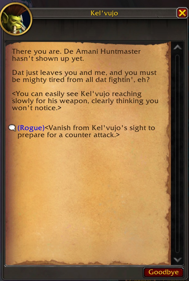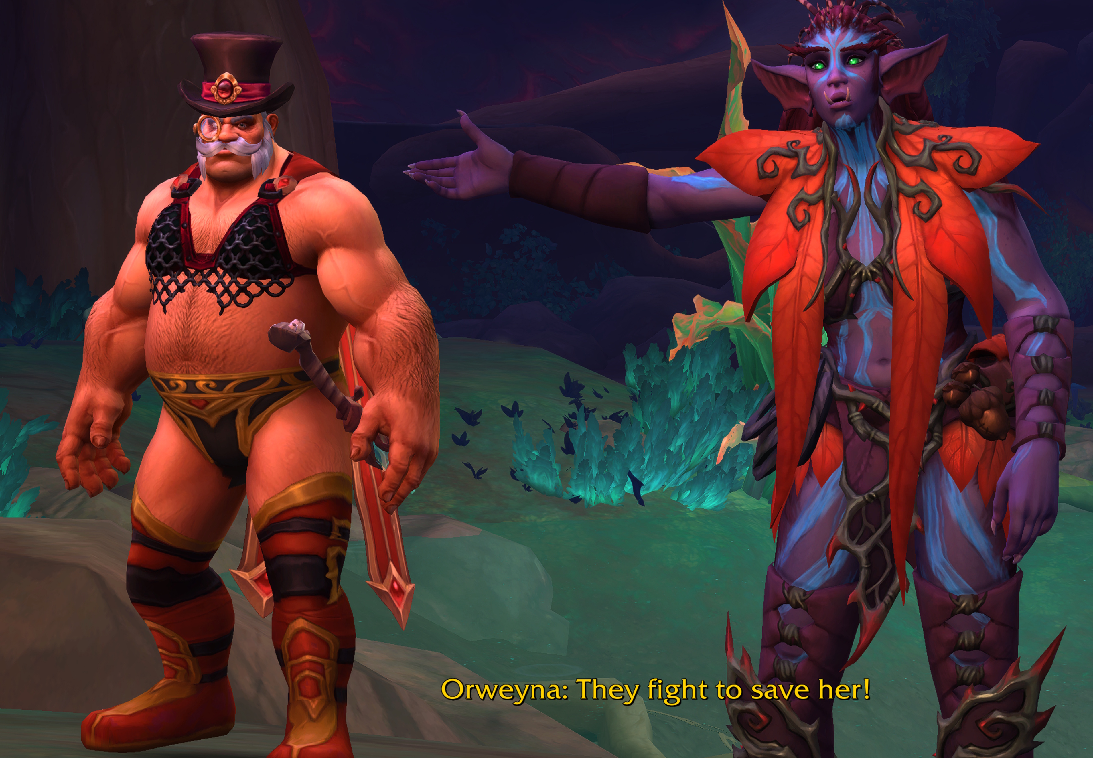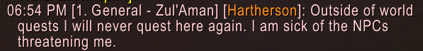 We as players show up and for some reason we just start slaughtering them all? The whole zone's quests were use going around killing all their high priests and shit and then we had 2 dungeons attacking their inner sanctums slaughtering their entire population.