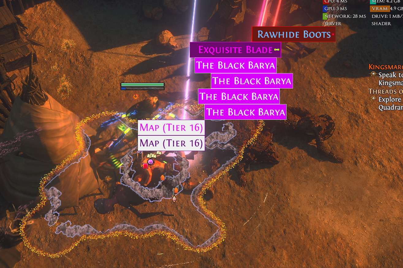 >>559907406Rolling your maps well is the real cheat code. Mfers go on and on about how good their build is cus it has 400m DPS or 100k ehp- but there isn't a build on the planet that can run some mod combinations. So really they're just chatting shit.Good builds are just builds that are affected by the fewest mods. So really people are dropping dozens of divines just so they can spend slightly less time rolling.