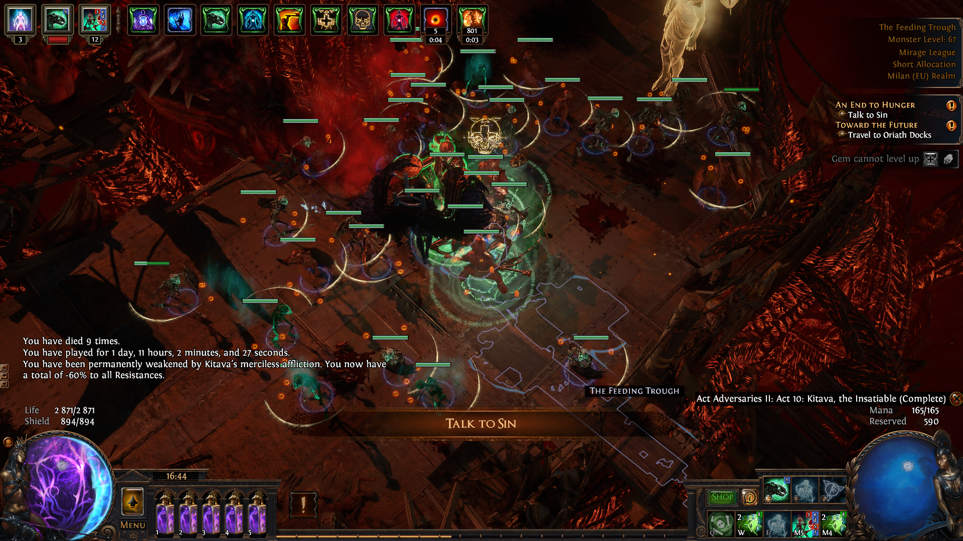 >>559855759Has a serious mid game slump between blasting campaign with 100k dps act 5 and getting enough gear to be comfy while mapping, but once you can just hold right click and blow up the entire screen it's pretty great. 100% getting shot with KF next league.