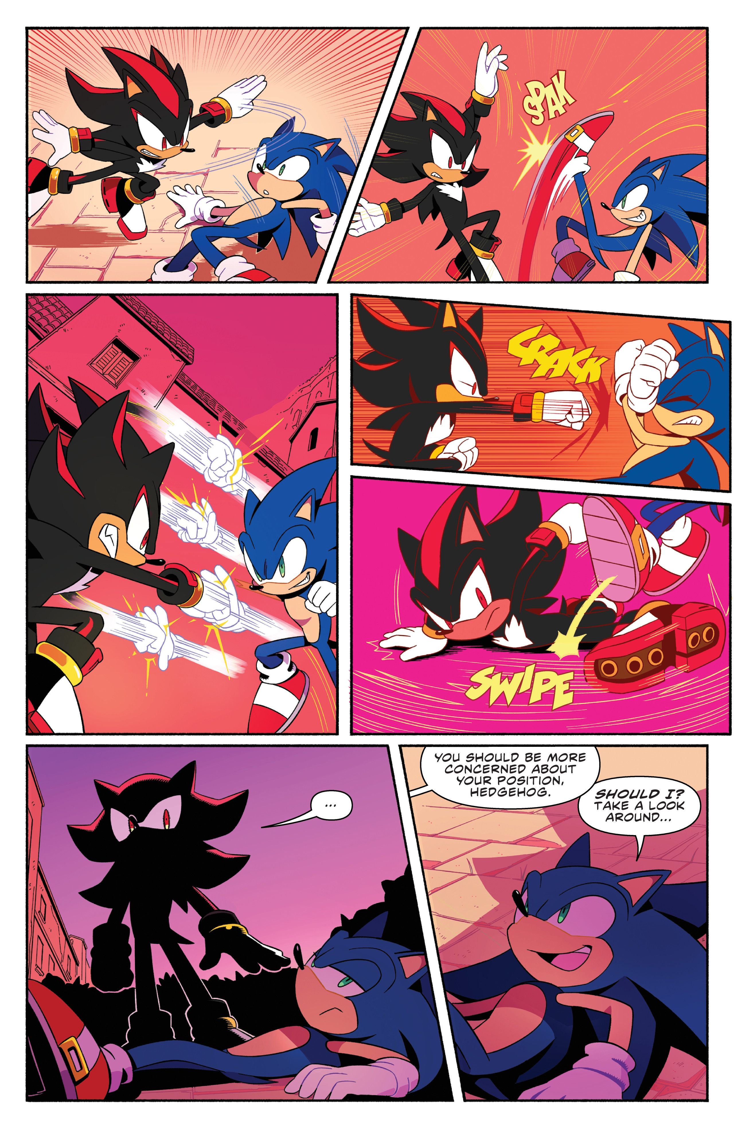 I am getting tired of Sonic and Shadow's rivalry. Move on.