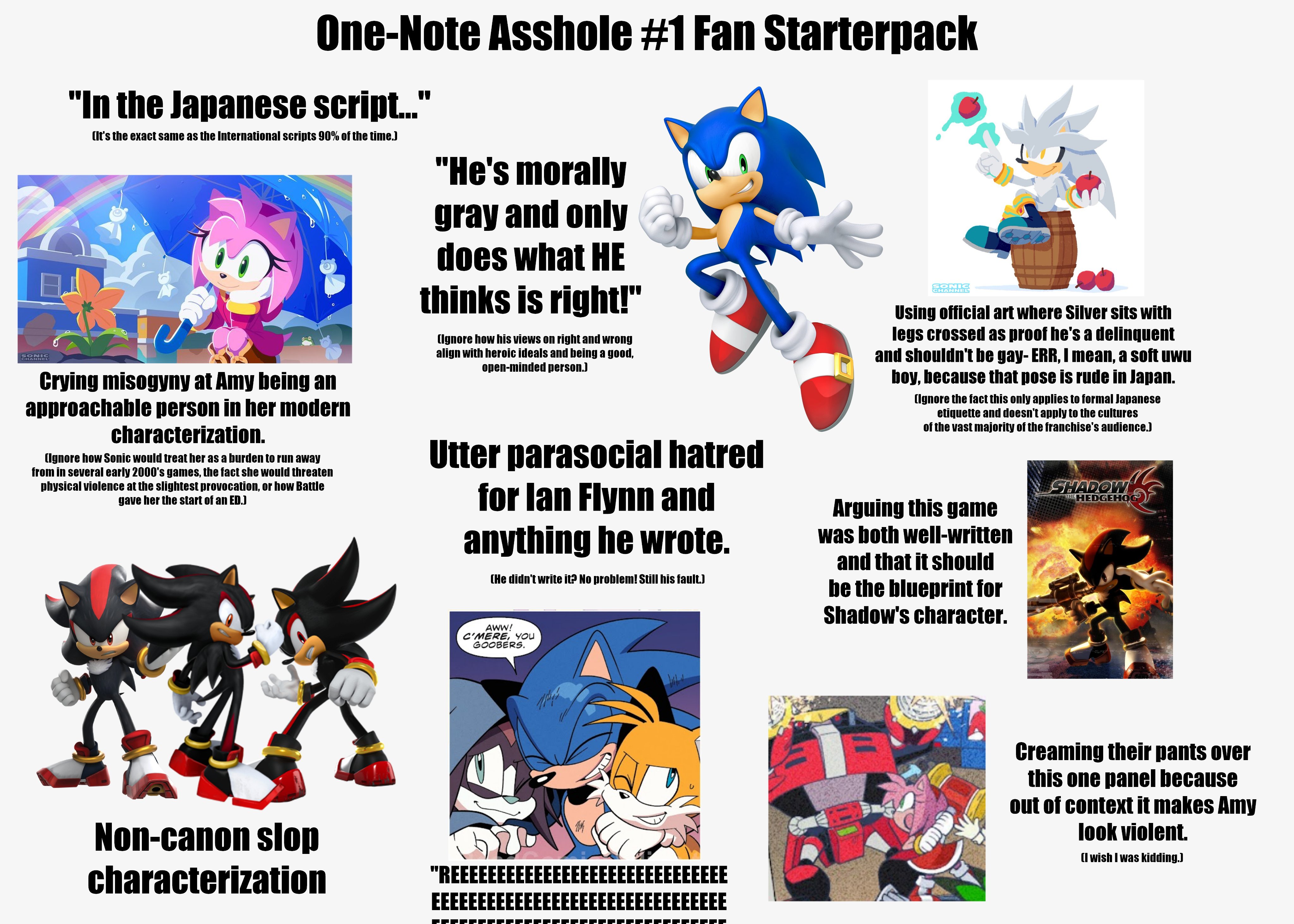 >>559856936>*SoJ had Sonic figured out in the 90s and then the mutts threw it all away because they wanted to enforce their own autism.FTFY, SoA wrote literal fanficition. Nothing is more autistic than calling amy "sally acorn" in CD's manual.