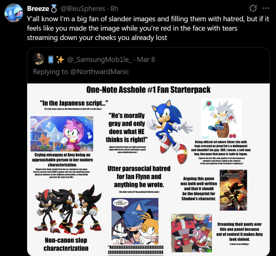 Scribbles I hope you know that Krack is using your characterization of Sonic for twitter arguments even though she hates your favorite ship