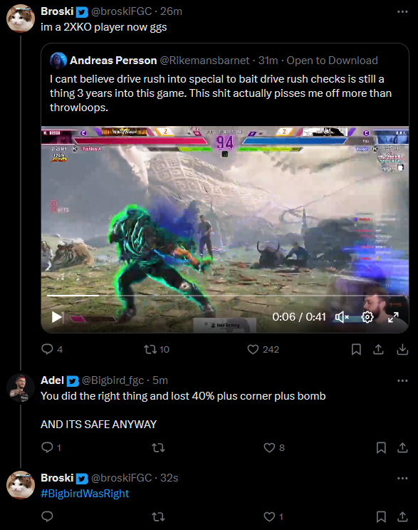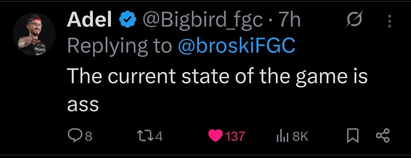>>559889639>In any case it's really looking like a band-aid type of patch that doesn't actually bother fixing the game's core flaws.They were never going to do that, that type of change requires a new director and battle planner or a new game altogether. It's clear they want the game to be this way, they'll tweak some values and add some combo-ability to some tools but they'll never get rid of DR and throw loops.Shit is cooked, but I wonder when the community will wake the fuck up and stop with the blind favouritism surrounding this game.