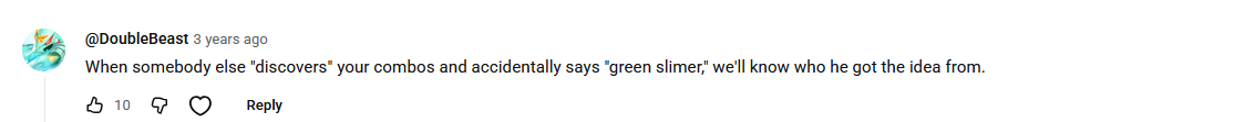 >>559947907I'll give you slimer, he was probably the first to say that. But not green slime, literally everyone was saying that day 1