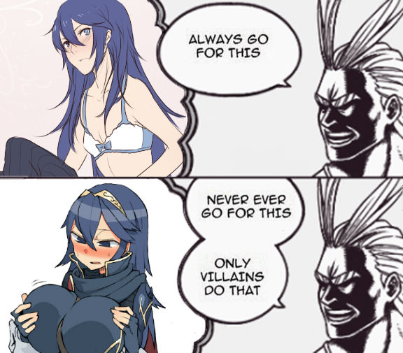 I can't imagine actually willing to portray and think of your "waifu" as a stupid bimbo whore just because one of the only fanartists who ever draws her portrays her as such. It'd be like pretending and accepting that Lucina really is a hooters waitress just cause that's the only art she gets nowadays