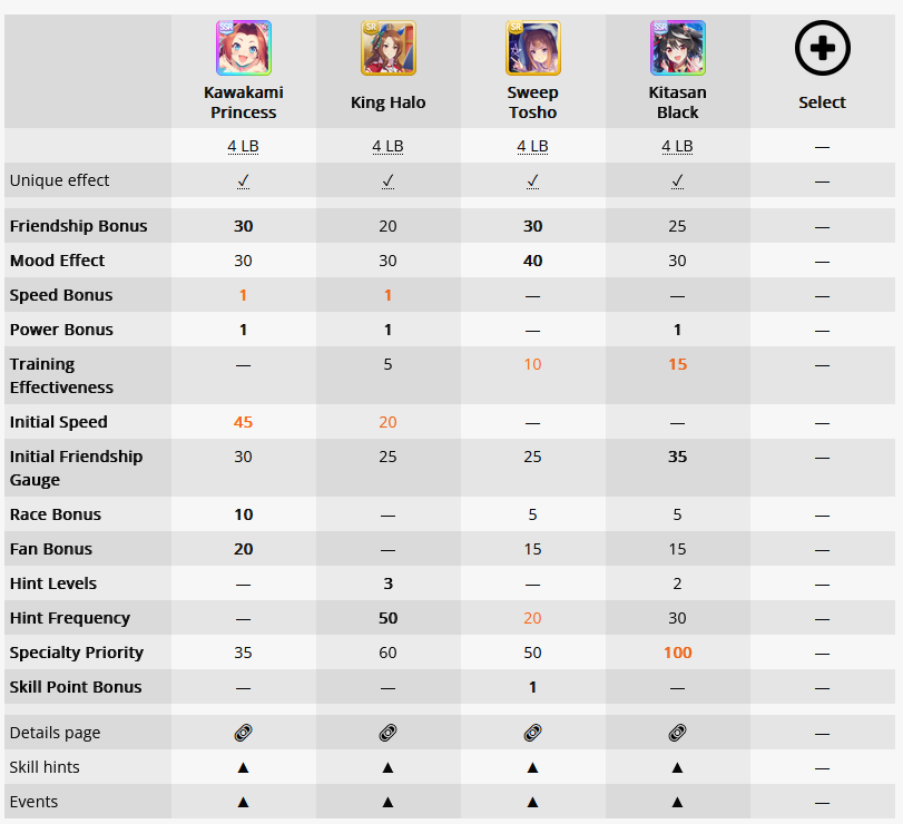 >>559878479>30 fb>power and speed bonus>45 initial speed>15 speed + guts and prudent or 25 energy and sp from 3rd chainKawakami is hidden tech