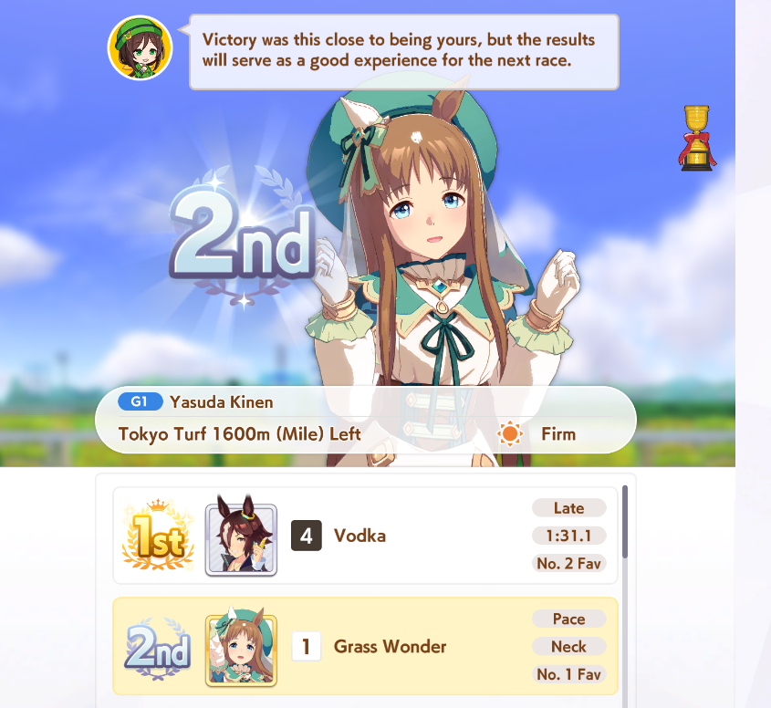>>559900623I did, she has 100 more speed and power than the other umas too