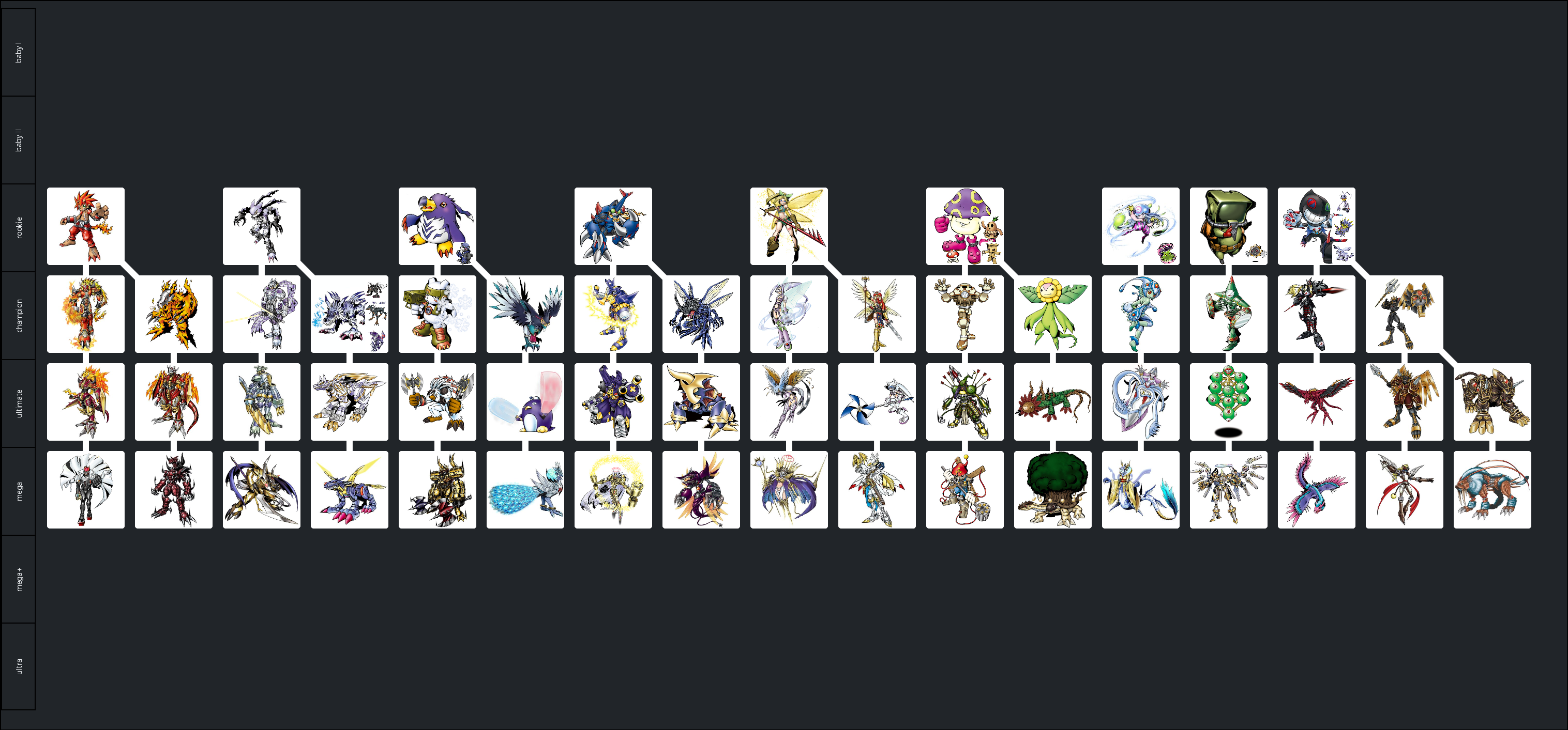 >>559878241favourite:Elizamon Punkmon > HeavymetaldramonHanimon > KaguyamonShoemon > CendrillmonNecromonDalphomonDinomonForgebeemon > QueenbeemonRyugumon Least:LandramonMockingbirdmonStyracomon