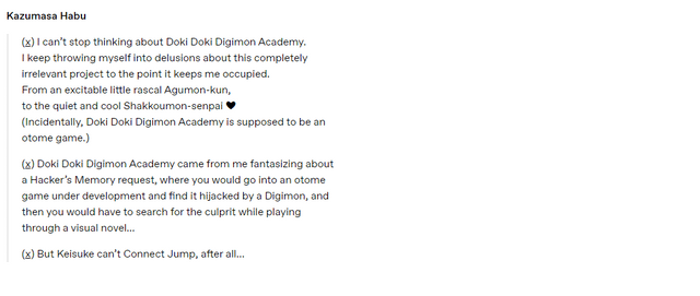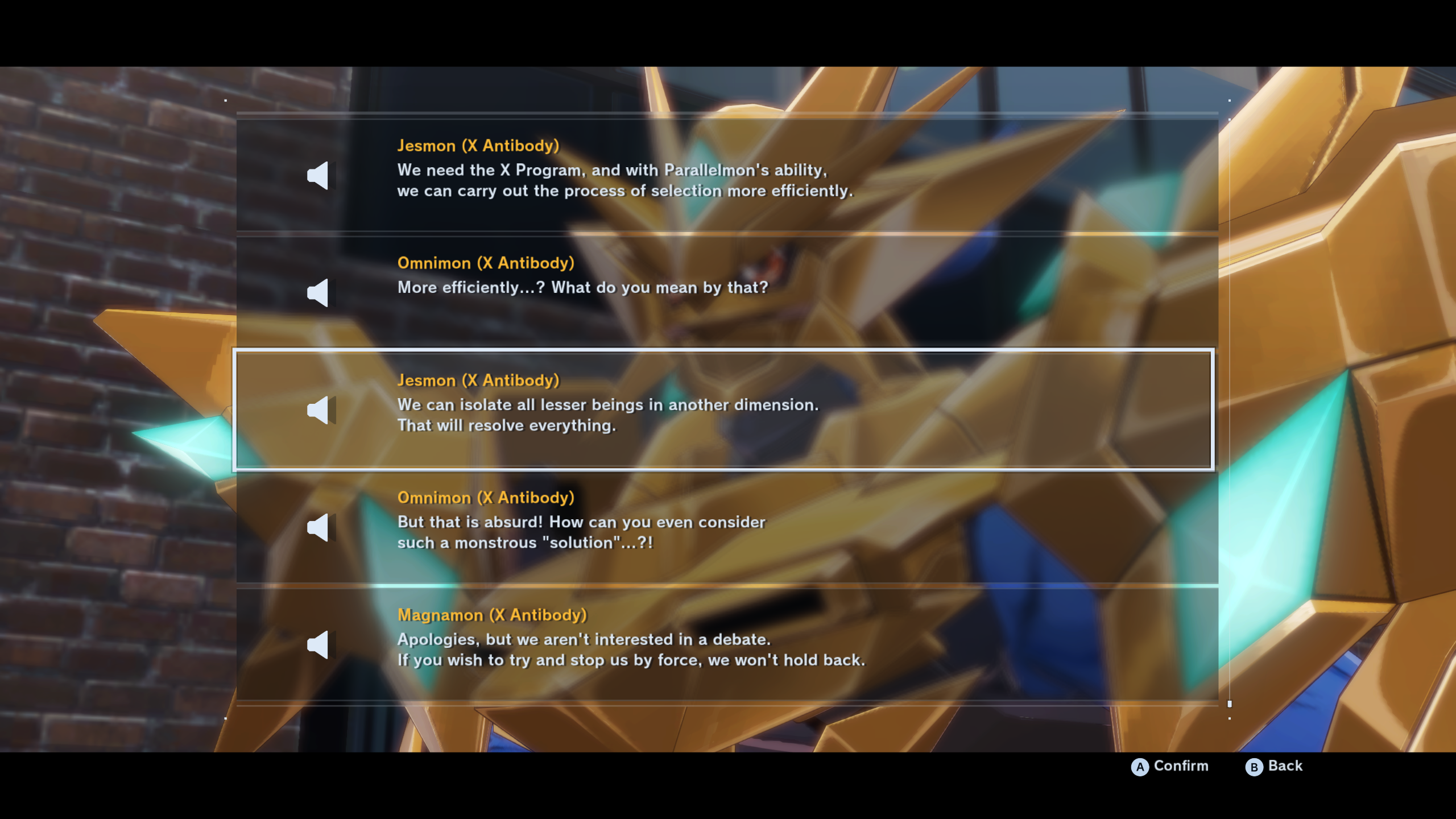 >>560061407>I should go exterminate some X-Antibodies right nowNo mate, Jesmon wants to genocide all non-antibodies. He sees them as lesser. His Solution in this DLC is to get Parallelmon's powers and put all non-antibody digimons in a concentraio-I mean concealed digital space.
