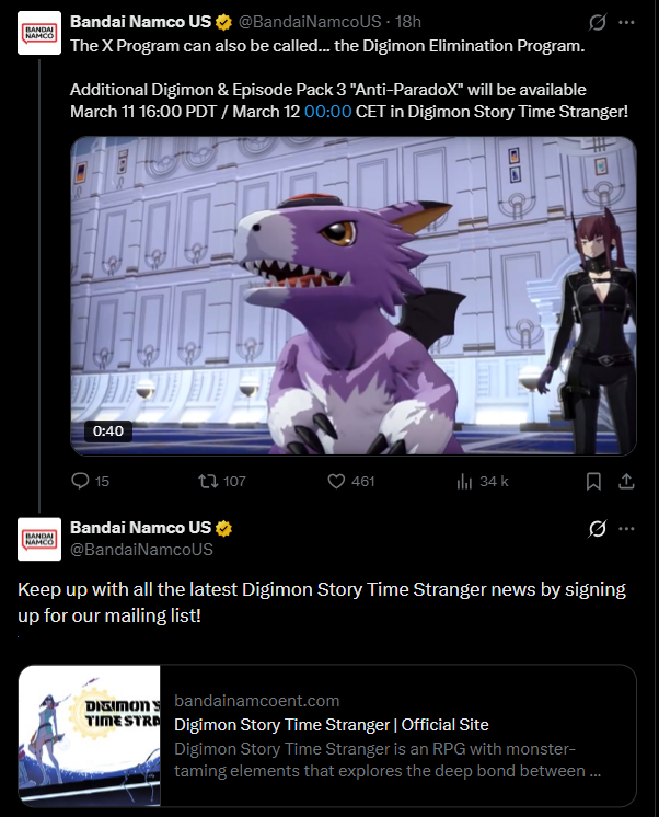 https://x.com/digimon_games/status/2031369485383307401New DLC March 11 16:00 PDT / March 12 00:00 CET