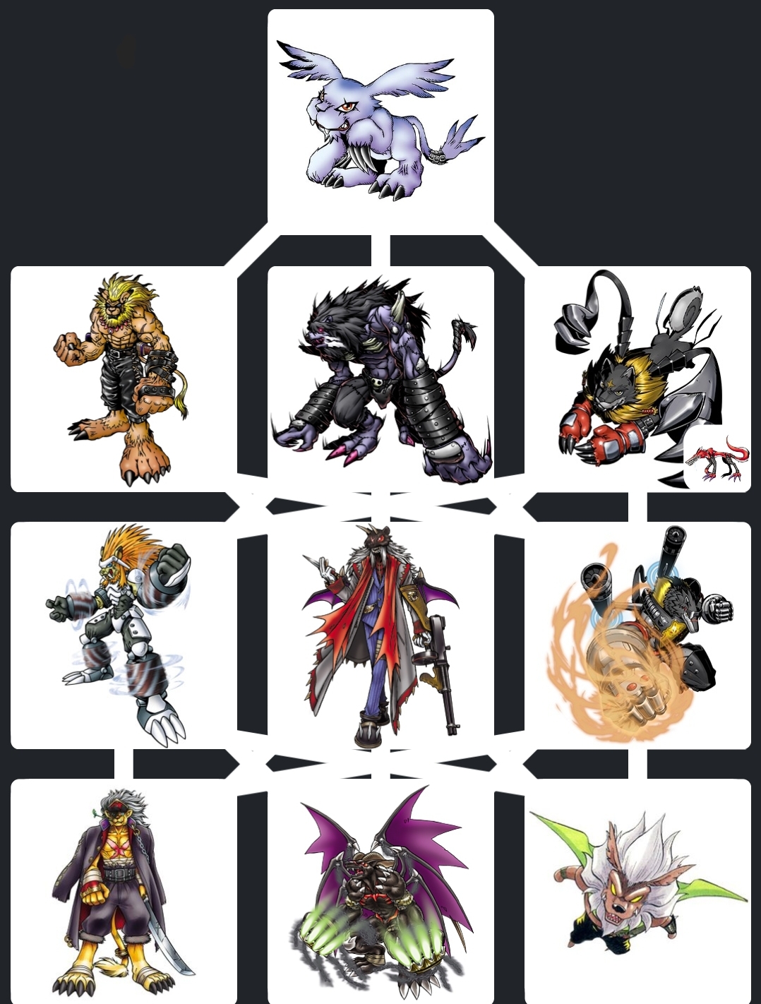 >>560071984the long awaited masc fox line, a full dark evo path going up into Rasenmon Fury Mode