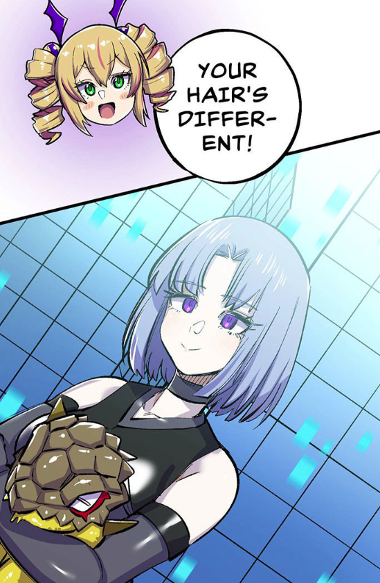 >>560066468Imagine being an artificial human and close(no pun intended)ly related to main villain, but her only involvement in story is being autistic thirdwheel/prop for yuri sidebait (who are already insignificant on their owns) and you have to force shitty haircut trope to fool the reader that she got any character development.Fuck I am disappointed with the writer so much.
