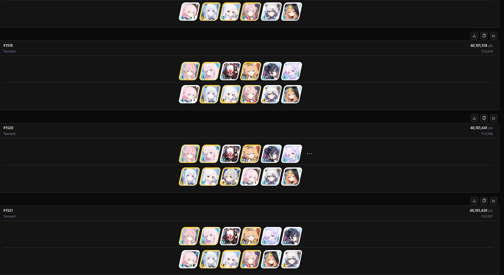 >damage report?>dupe Tsukuyo >new Renge>dupe Sumire(Part-Timer)>mReisa sparknot getting any pink in 200 pulls has chances 1 to 412? glad I'm not one of those guys then haha