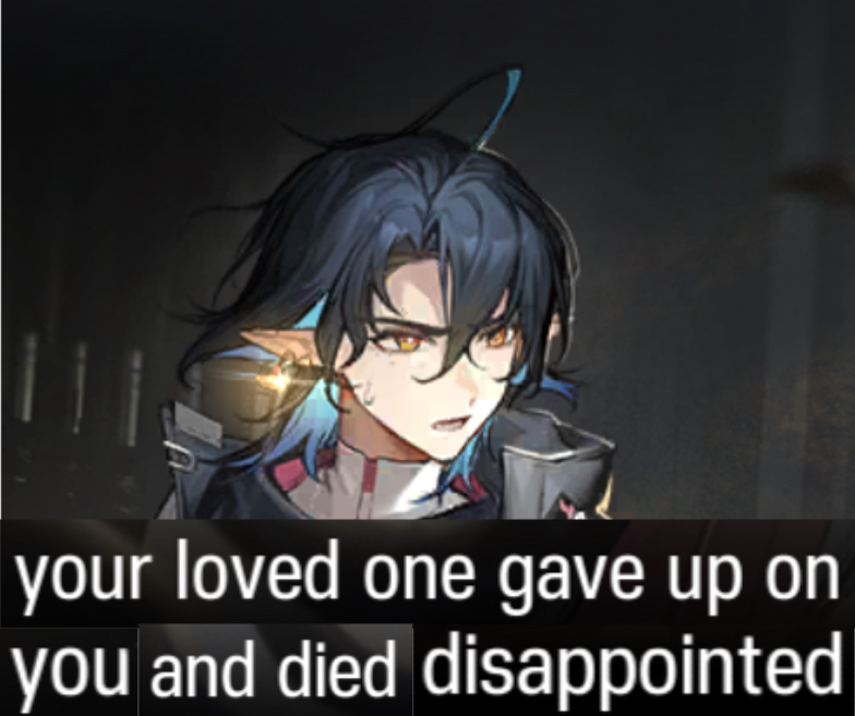 >>559932368me when I’m about to drown myself to escape from my soul crushing office job and lemumu shows up to impart her words of wisdom (do a flip)