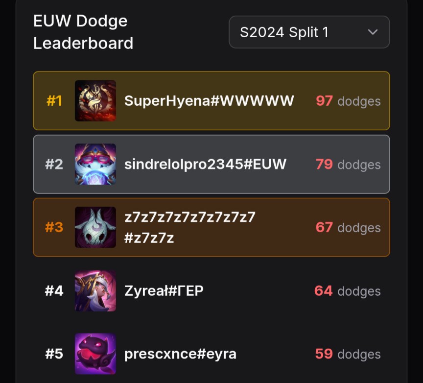 >>559916910no its true... literally only going to play decay games on my gm acc... lol sorry not sorry retards at riot games giving me +20 then +17 then + 20 then + 15 not my circus...fun fact... if you spammed 500 games in january you could have been inflated minimum 800 LP if you only played decay games from then on...>>559917064literally... they already removed dodges... theres no reason not to have longer queues when the players don't dodge anymore...