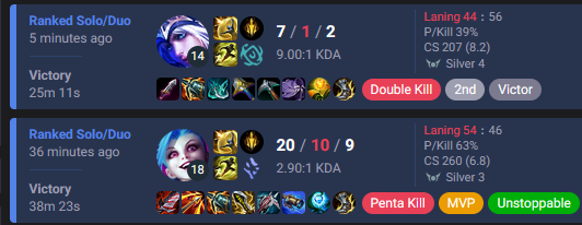 >>559918408isnt it so funny... how people this thread were giving me shit about duoing...i already stated numerous times... if riot gives balanced matchmaking... i'll stop duoing... if riot insists on giving me alistar mids and plat 2 smolder adcs... well... i'm not going to play by their little EOMM game... its that simple lol...