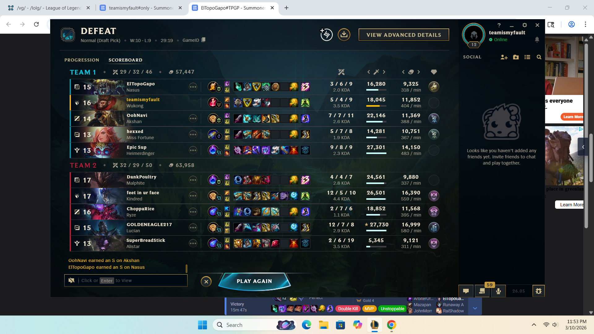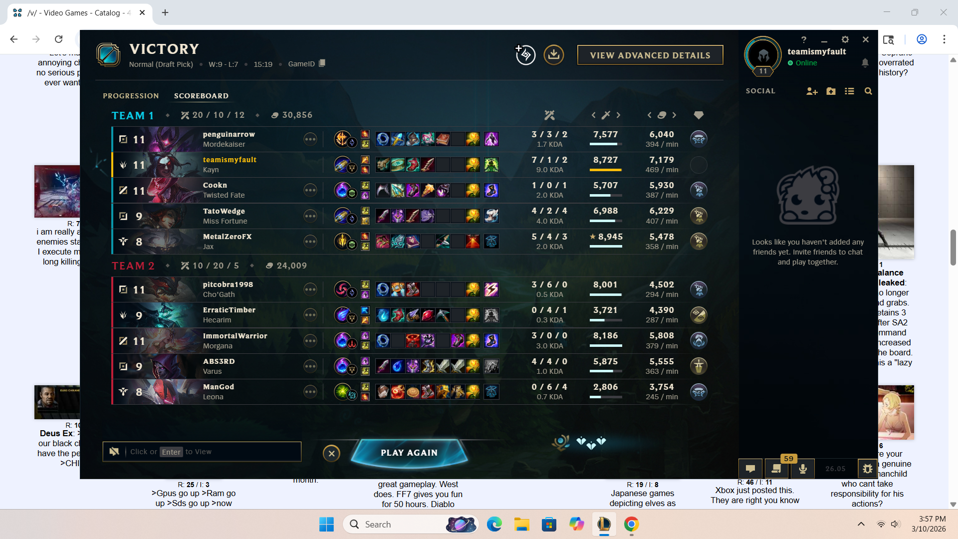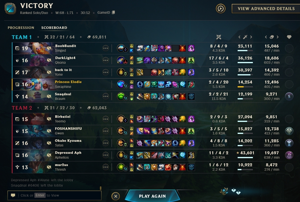 >>559970331How anyone could look at this scoreline and unironically type this response >>559972712Is hilarious. This entire thread is just full of larpers isnt it>>559974126Yeah i pretty much just stop playing if I get invaded for free cause my team is tunneling their lanes