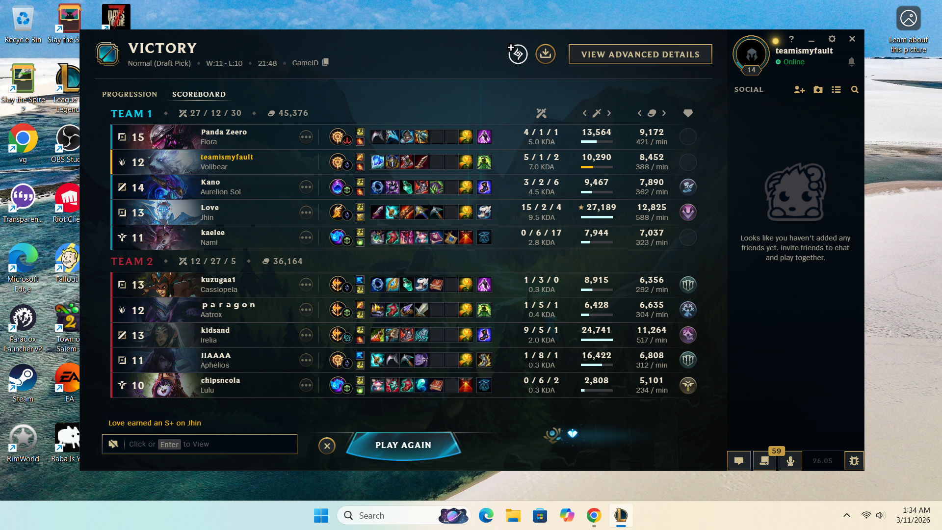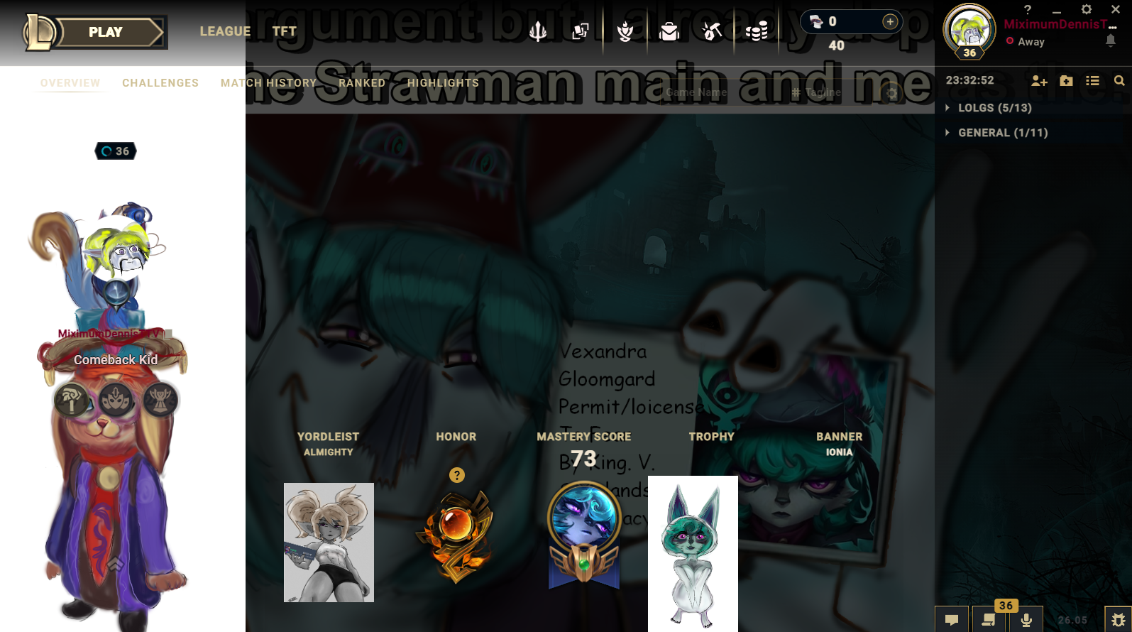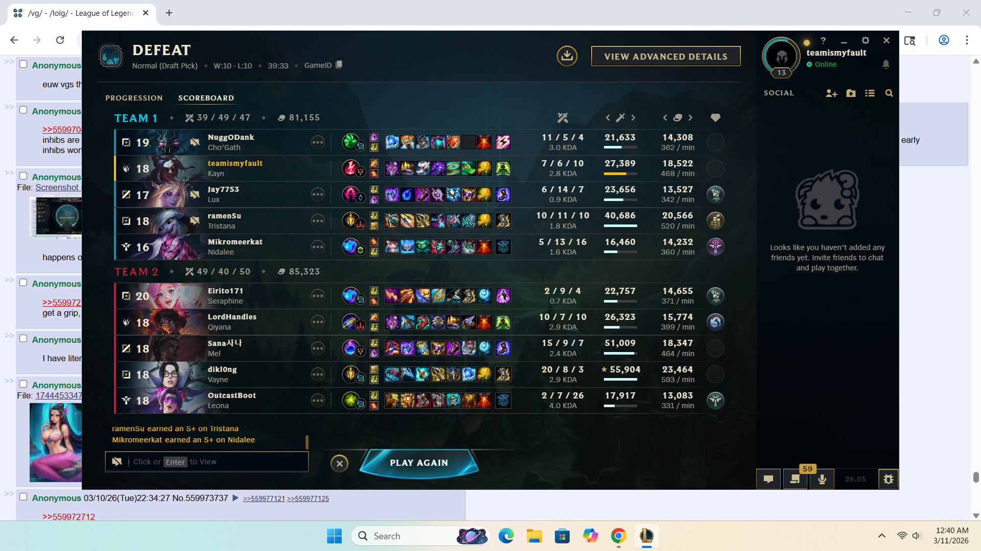 >>559977121>more damage than the mid laner>more kp>somehow useless in the side laneThinking isnt your strong suit is it anon? I was shen and present in literally every fight. Its okay to admit that MMR is a bad system in league, it was designed for 1v1 games.>gained lp in pic relateds game where I was intentionally running it downYoud have to be retarded to still support MMR in 2026.>>559977098Not true I bought an Emerald 4 account and its currently Emerald 1 on it i just dont play it cause I didnt earn the rank. Ranked is 90% luck for the average player that isnt on the level of GM/Chall/Pros. Which literally EVERYONE knows because no one who is in those ranks sees any real difference in skill between anything below Masters.