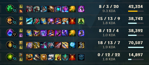 >>559916624To reiterate from this here and following>>559916140>>559916640>>559916872>>559916910Riot needs to do an hard reset of the MMR/whole ladder and change MMR calculations, but they'll never do it because they found a psychological model that makes them earn money. It's as much their fault as us players, the only losing party is, I'm fact, passionate players.