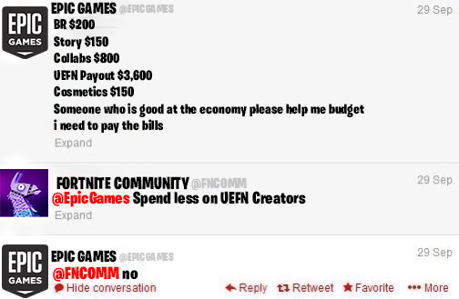 >epic paying literals who's and out dated unc's to collab in the game>runs out of money>not getting nothing in revenue>"master sweeney, there are too many of them, what are we going to do?">